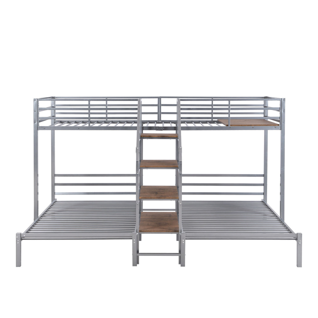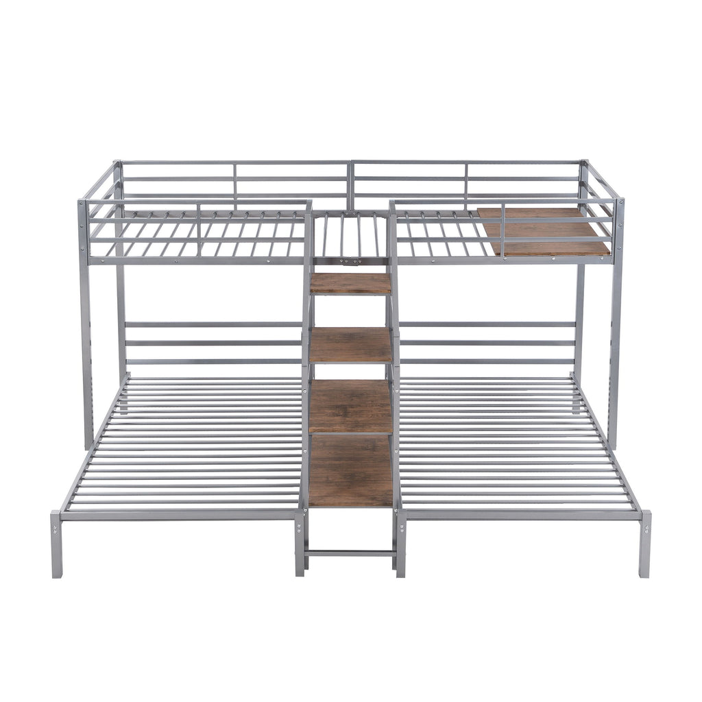 Twin Over Twin & Twin Bunk Bed With Storage Shelves And Staircase, 3 Deck Design - Silver