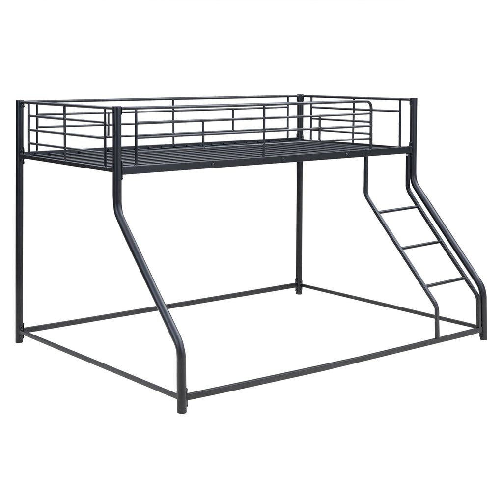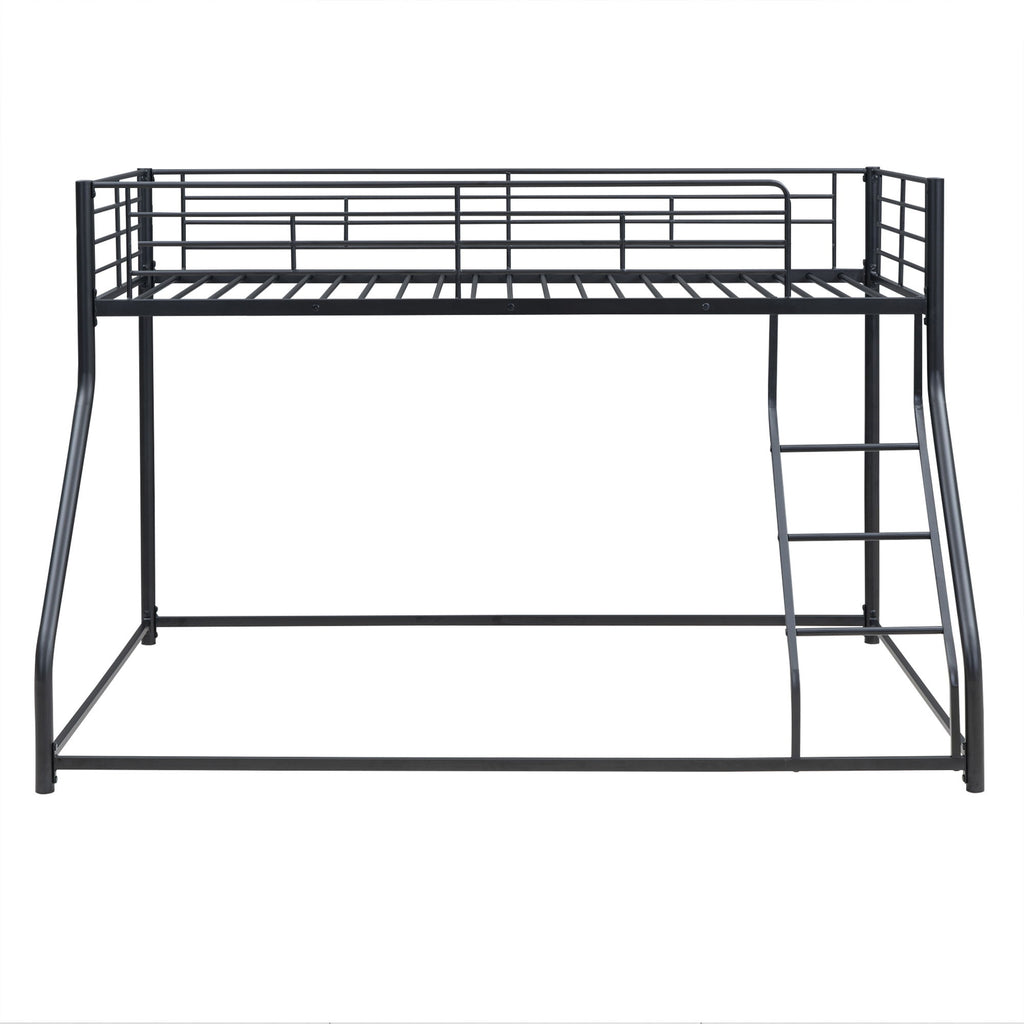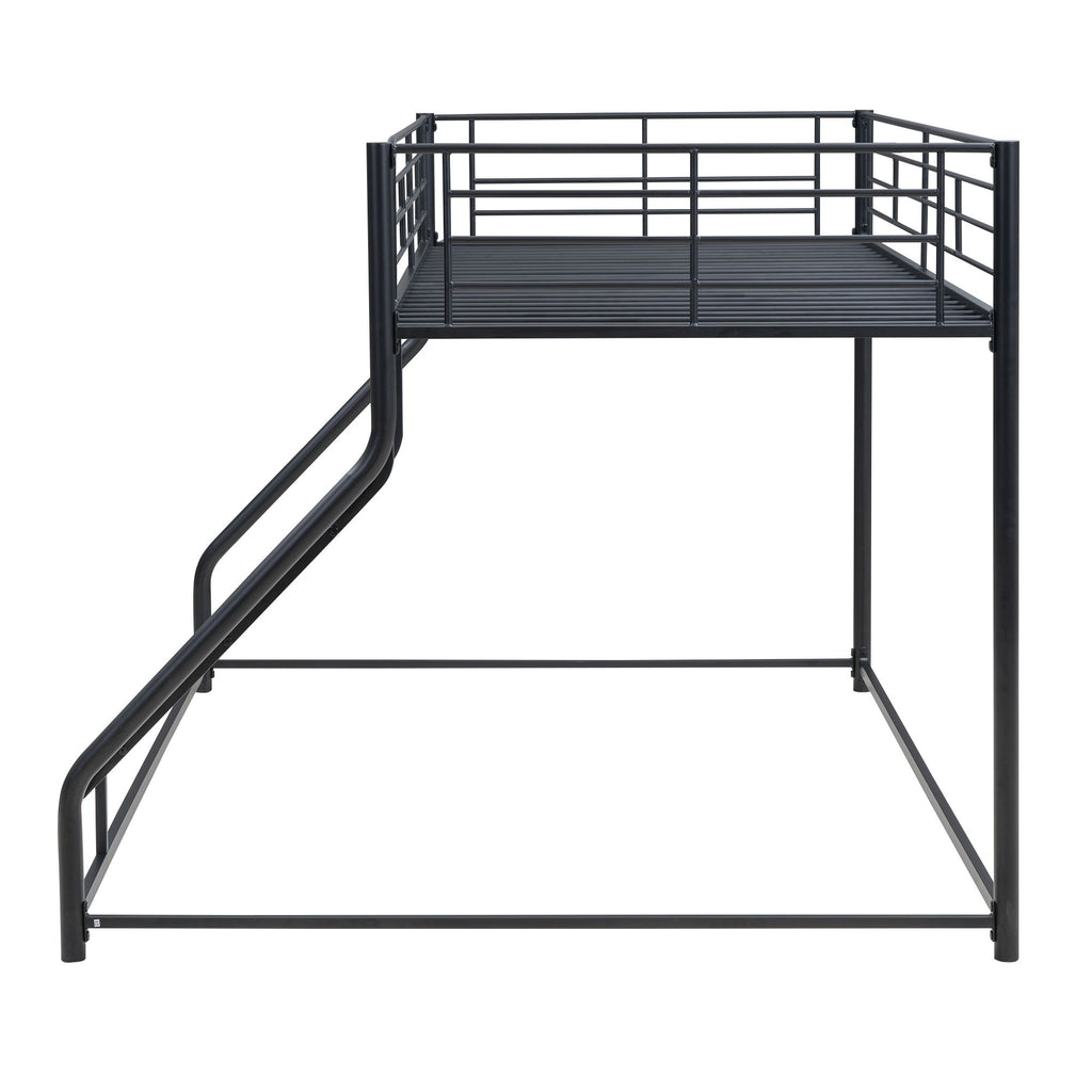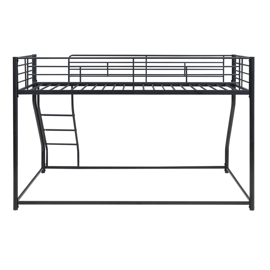 Floor Bunk Bed, Full Long Over Queen, Durable Steel Frame With Inclined Ladder - Black