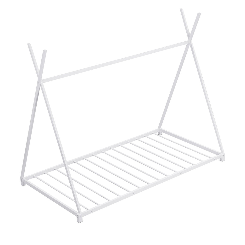 Twin Size House Platform Bed With Triangle Structure, Sturdy Frame, Low Profile Design - White