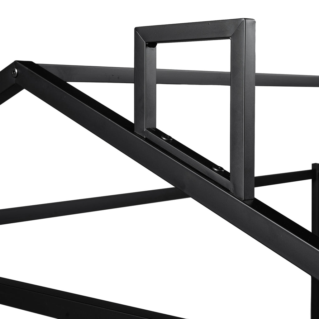 The playful house-shaped design adds charm and character to your bedroom. A simple and interesting appearance gives your creativity free reign and you can decorate this bed, giving full play to imagination. You don't have to worry about safety. Made of high-quality metal, the bed is durable for long-term use. The bed has pre-drilled holes which are standard features of our beds, so the bed is easy to assemble without taking too much time.