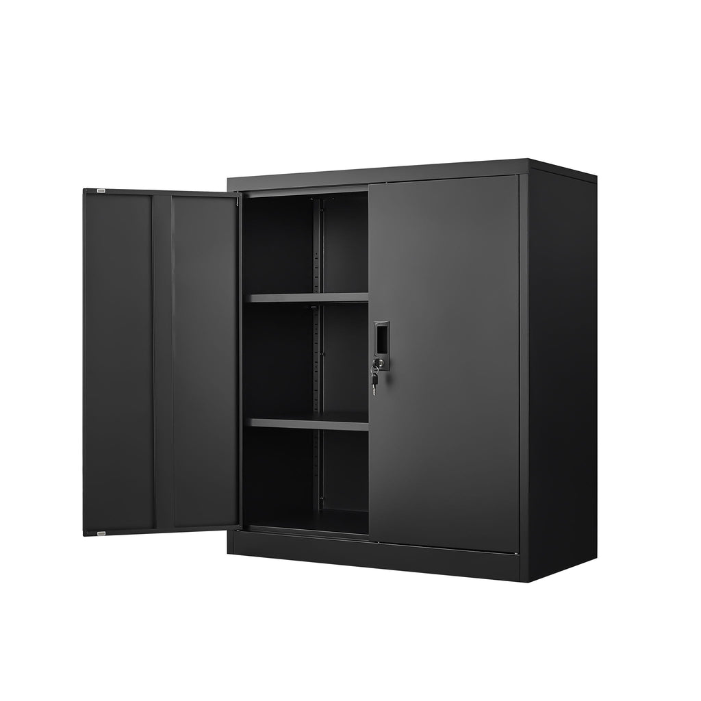 Storage Cabinet With Locking Doors And Adjustable Shelf, Folding Filing Cabinet For Home Office - Black