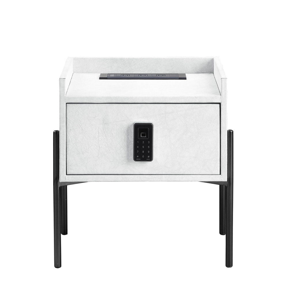 Metis - Nightstand With USB & Electric Lock - Vintage White Top Grain Leather 20.0"W x 17.0"D x 20.0"H - 31.0 lb