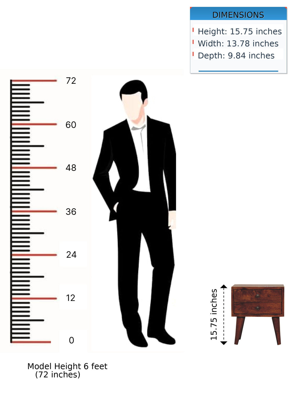 - Mini Chestnut Modern Nightsand - Endlessly versatile, this mini nightsand table makes a perfect stand for nibbles, drinks, or a lamp and will prove handy all over your home. It is made from 100% solid mango wood in a chestnut finish and features 2 drawers. Other features include shiny knobs on the drawers and 4 Nordic-style legs.