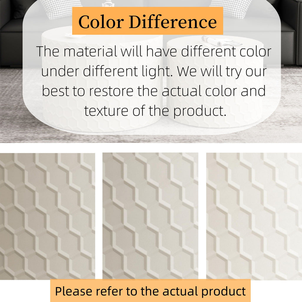 Minimalist Honeycomb Nesting Coffee Table Set, Round Drum Circle Table (Set of 2) - Beige