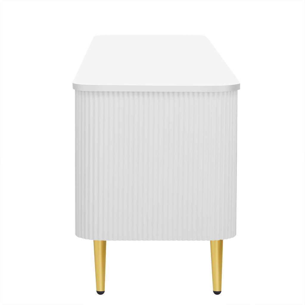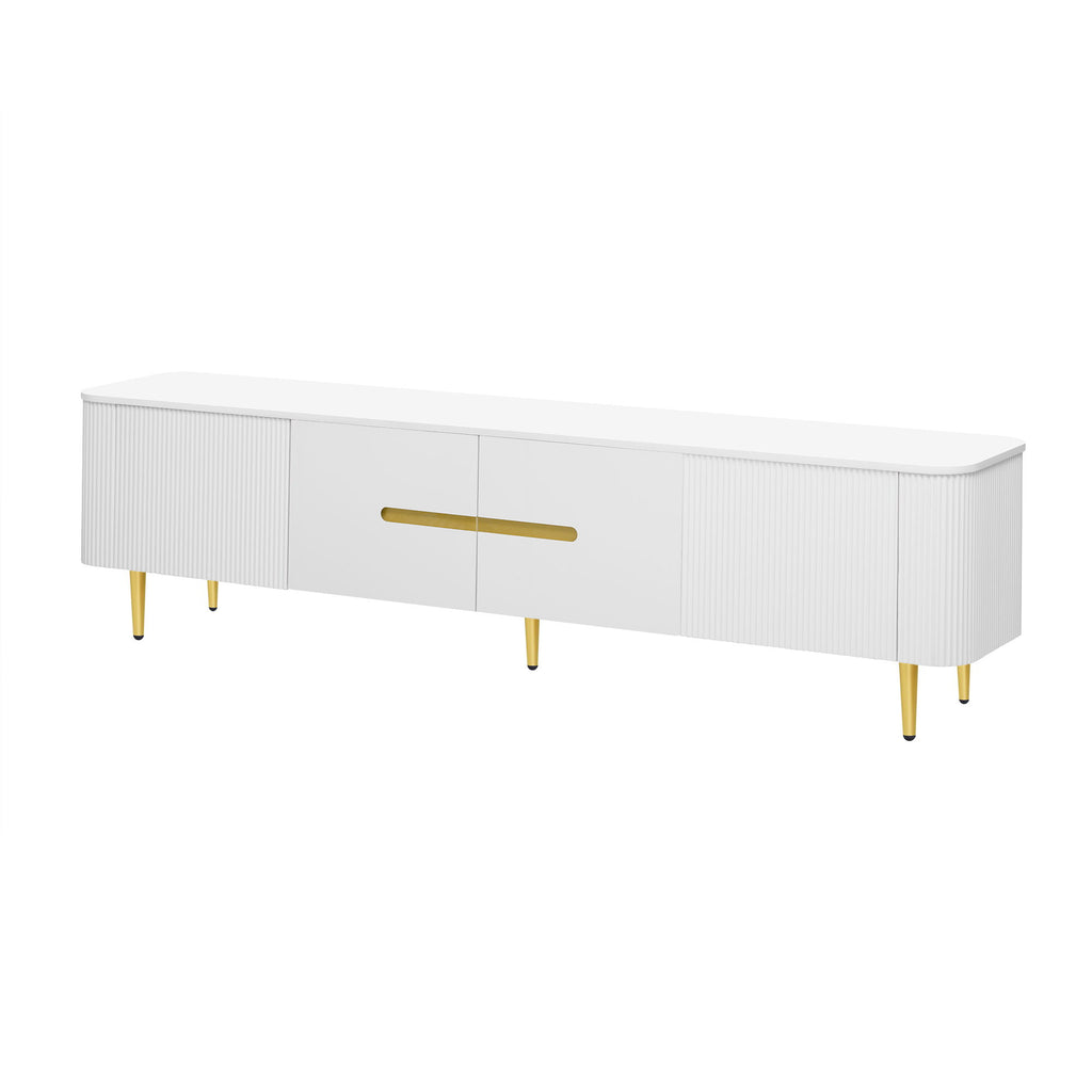 Minimalist TV Stand For TVs Up To 85", Modern Entertainment Center Media Console With 4 Spacious Cabinets - White