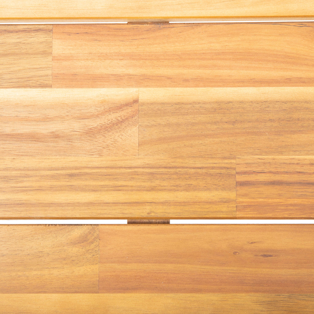 - Acacia Wood Construction: The Mirabelle Corner Chair and Coffee Table are crafted from acacia wood, known for its sleek, exotic look and durability. This hardwood naturally withstands outdoor elements and resists wear and tear, maintaining its appearance over time.