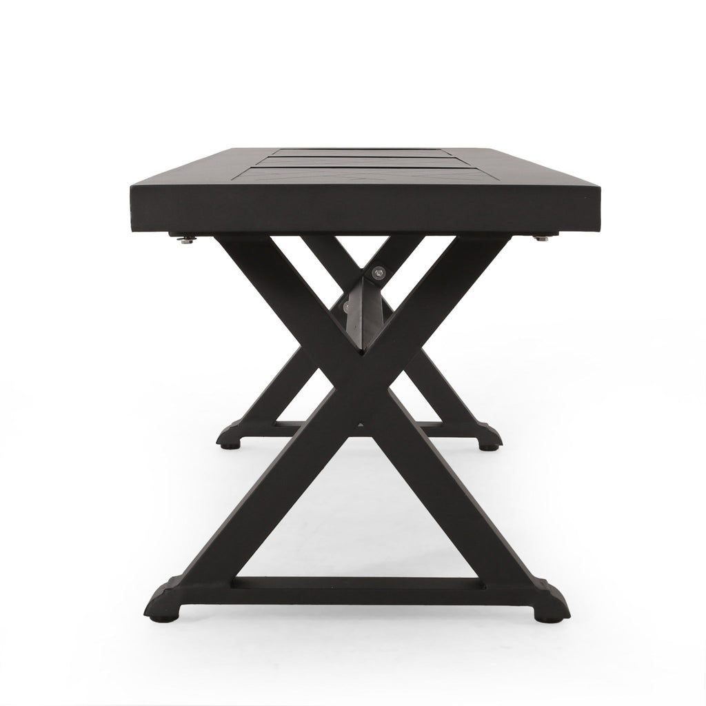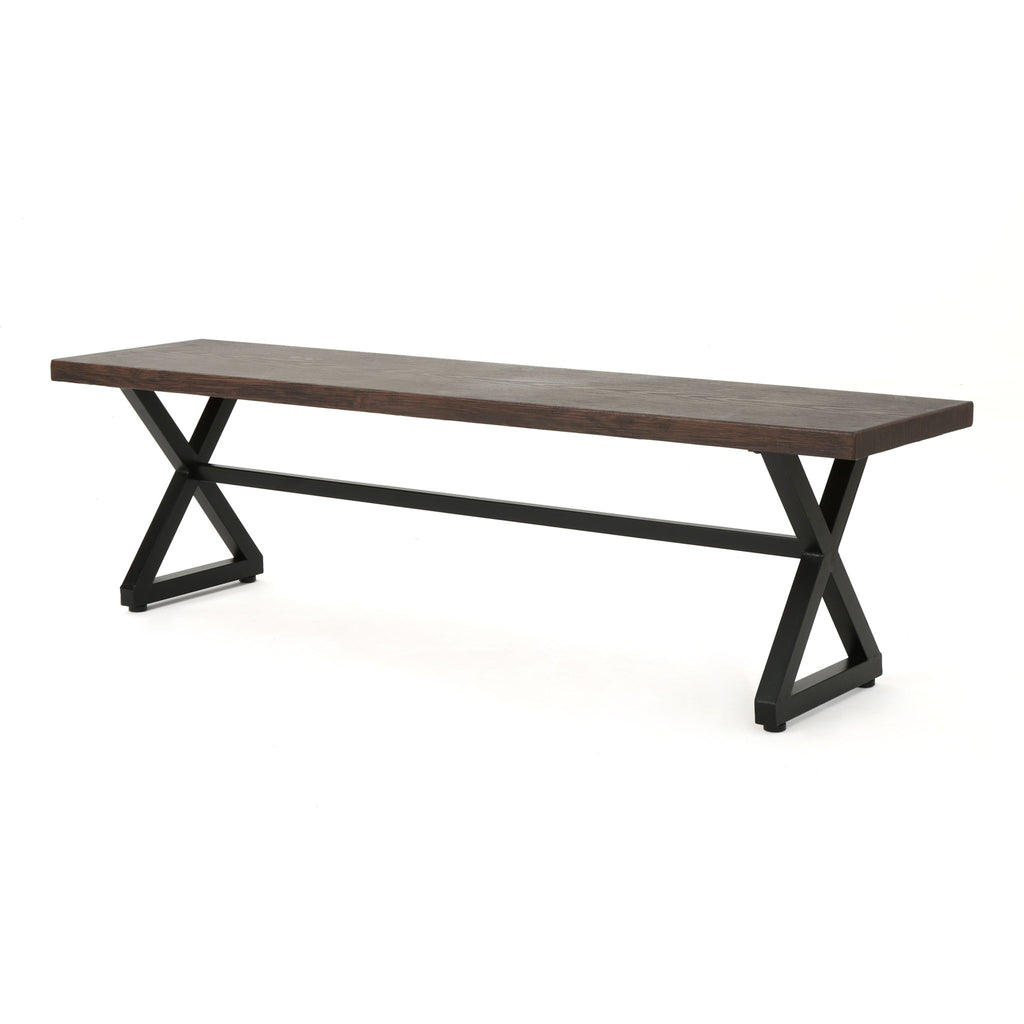 Modern Industrial Outdoor Aluminum Dining Bench With Steel Frame - Brown / Black