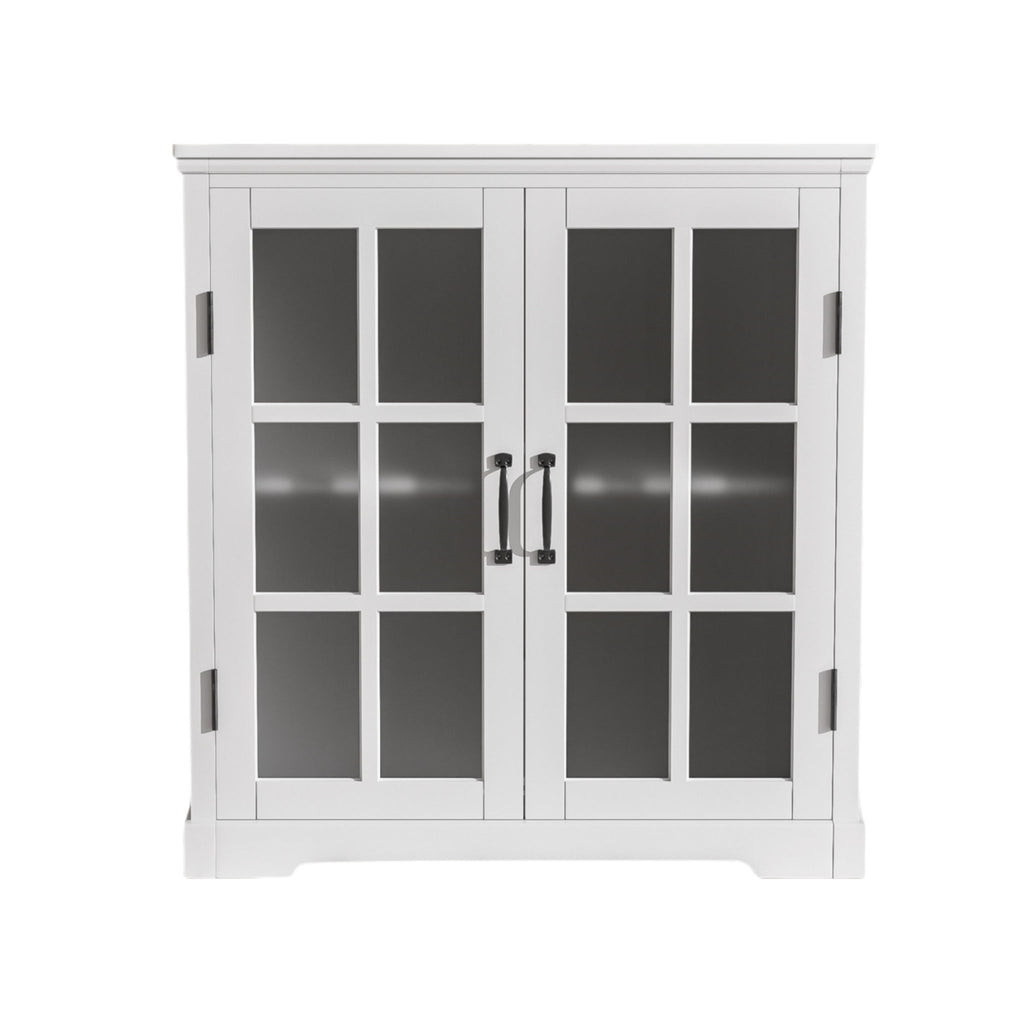- Tempered Blurred Glass Doors: Safety-tempered glass provides durability and privacy while maintaining an airy, light-filled appearance. Moisture-Resistant Frame: Rubber wood construction withstands humidity, preventing warping and ensuring lasting stability.