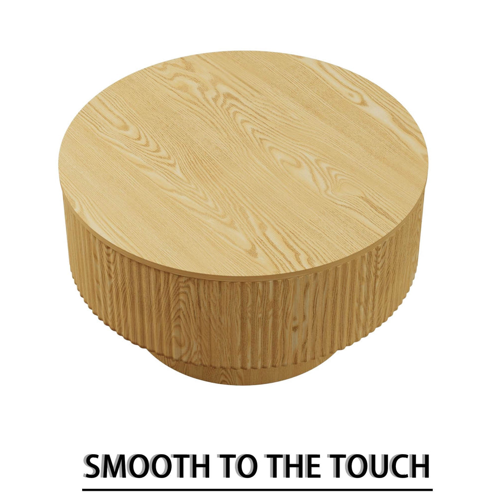 Circular Coffee Table With Stripe Design And Storage Space - Natural Wood