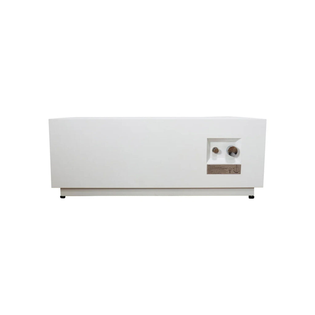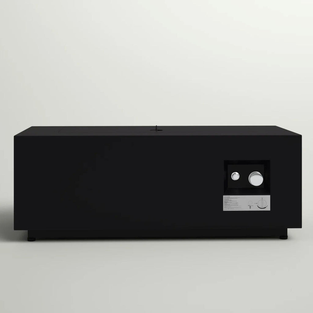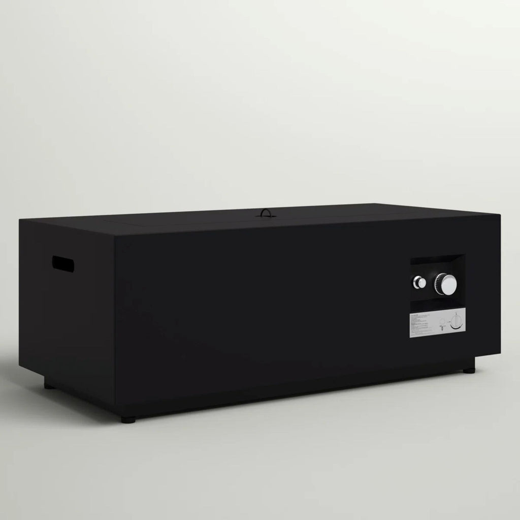 - Modern Design: This fire pit table features a sleek, modern design that enhances the aesthetics of your patio or balcony. Its clean-lined, rectangular shape is complemented by the transparent glass shields that add a touch of elegance while diffusing the firelight.