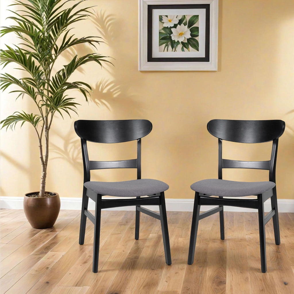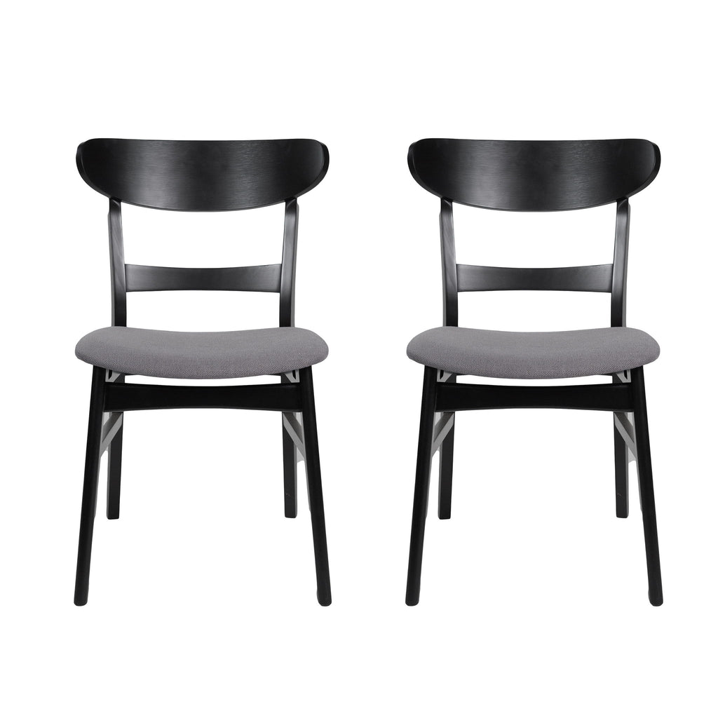 Mid Century Modern Dining Chair Set With Upholstered Seating And Rubberwood Legs - Dark Gray
