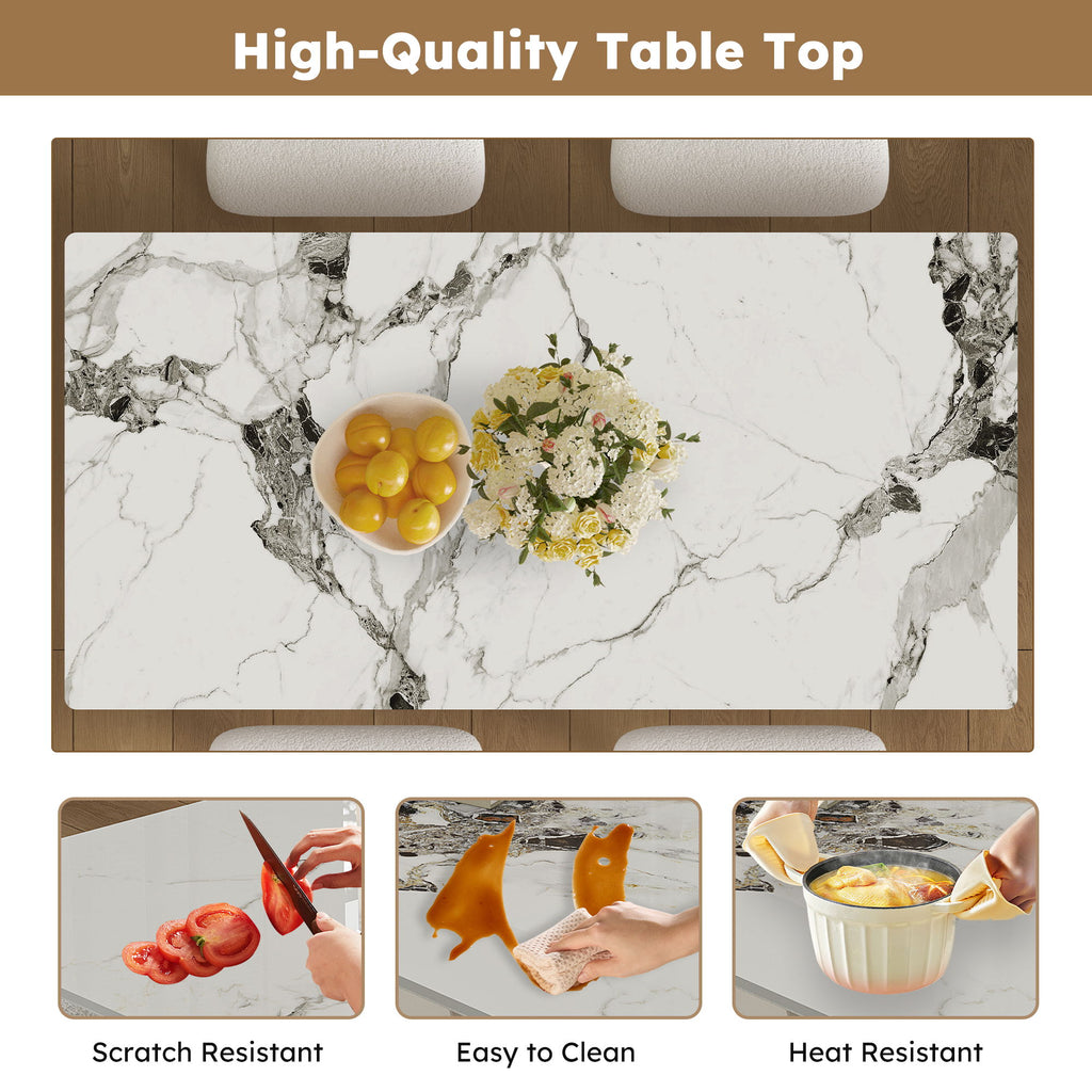 Dining Table Set With Storage, Includes 6 Chairs For Kitchen - White
