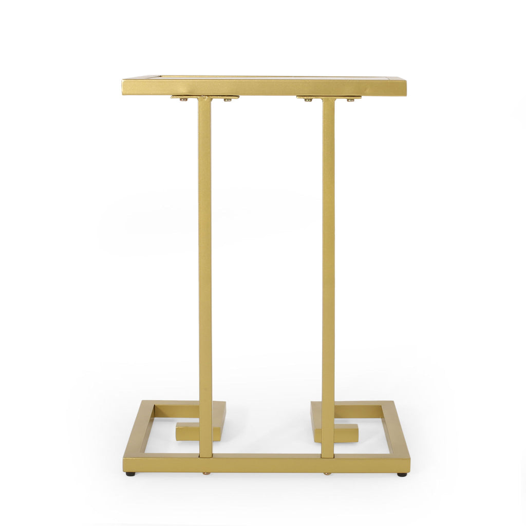 Modern Glam C Shaped End Table With Tempered Glass Top - Gold