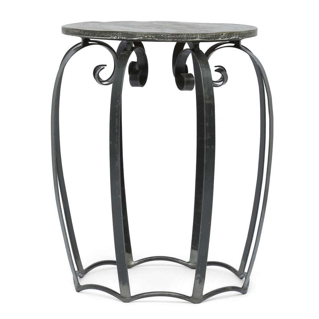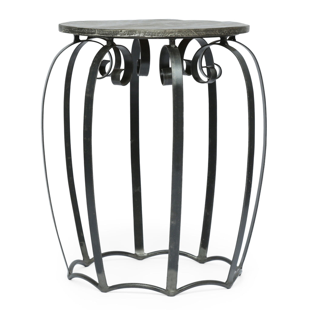 Modern Industrial End Table With Mango Wood Top And Iron Frame - Gray