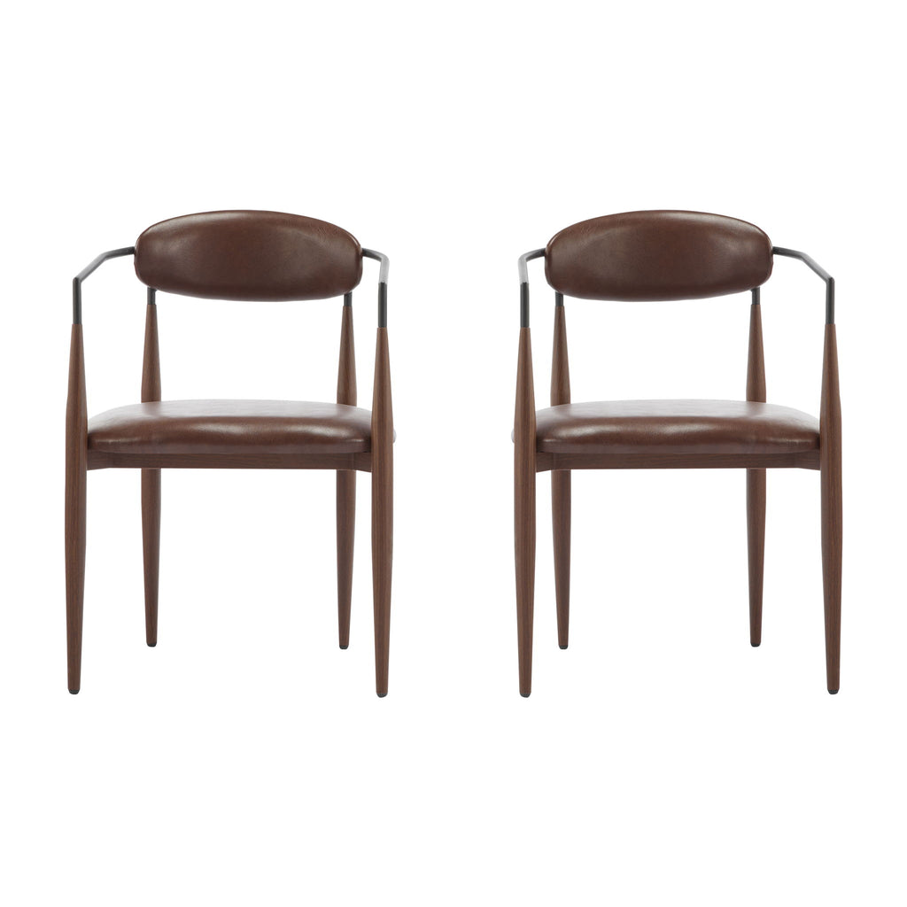 Modern Dining Arm Chair (Set of 2) Sleek Upholstery With Iron Frame - Dark Brown