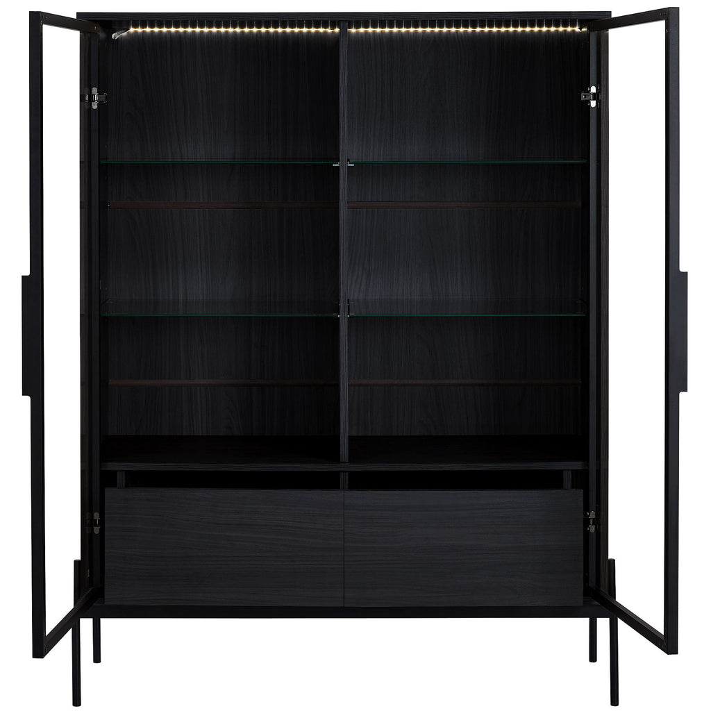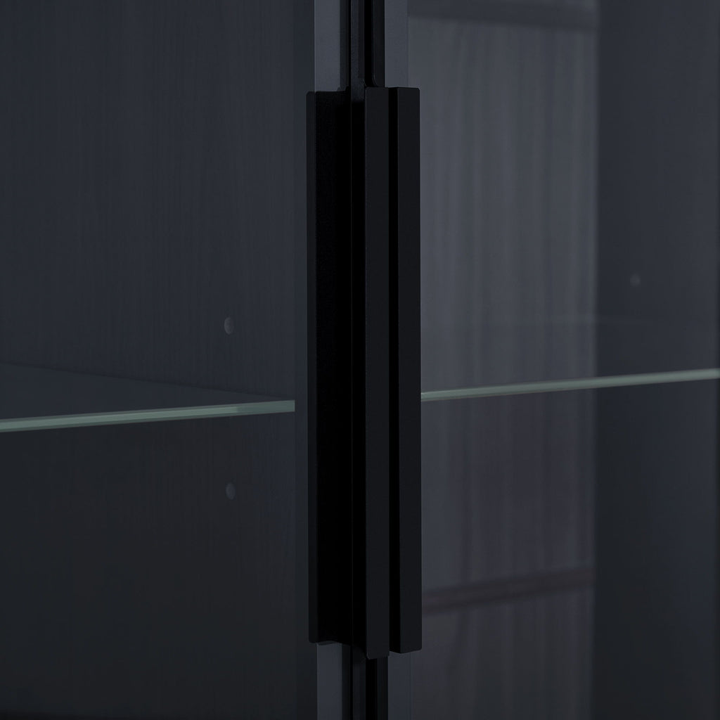 Modern Minimalist Style LED Curio Cabinet With Tempered Glass Door, Metal Legs - Black