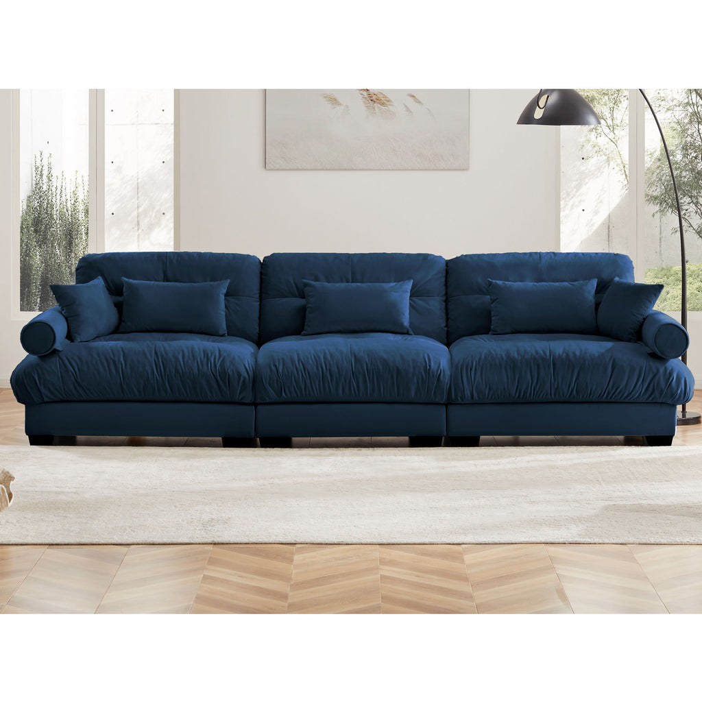 Modern 3 Seat Extra Large Sofa With Pillows Cloud Like Comfort - Blue