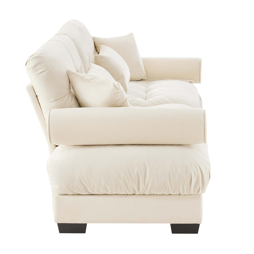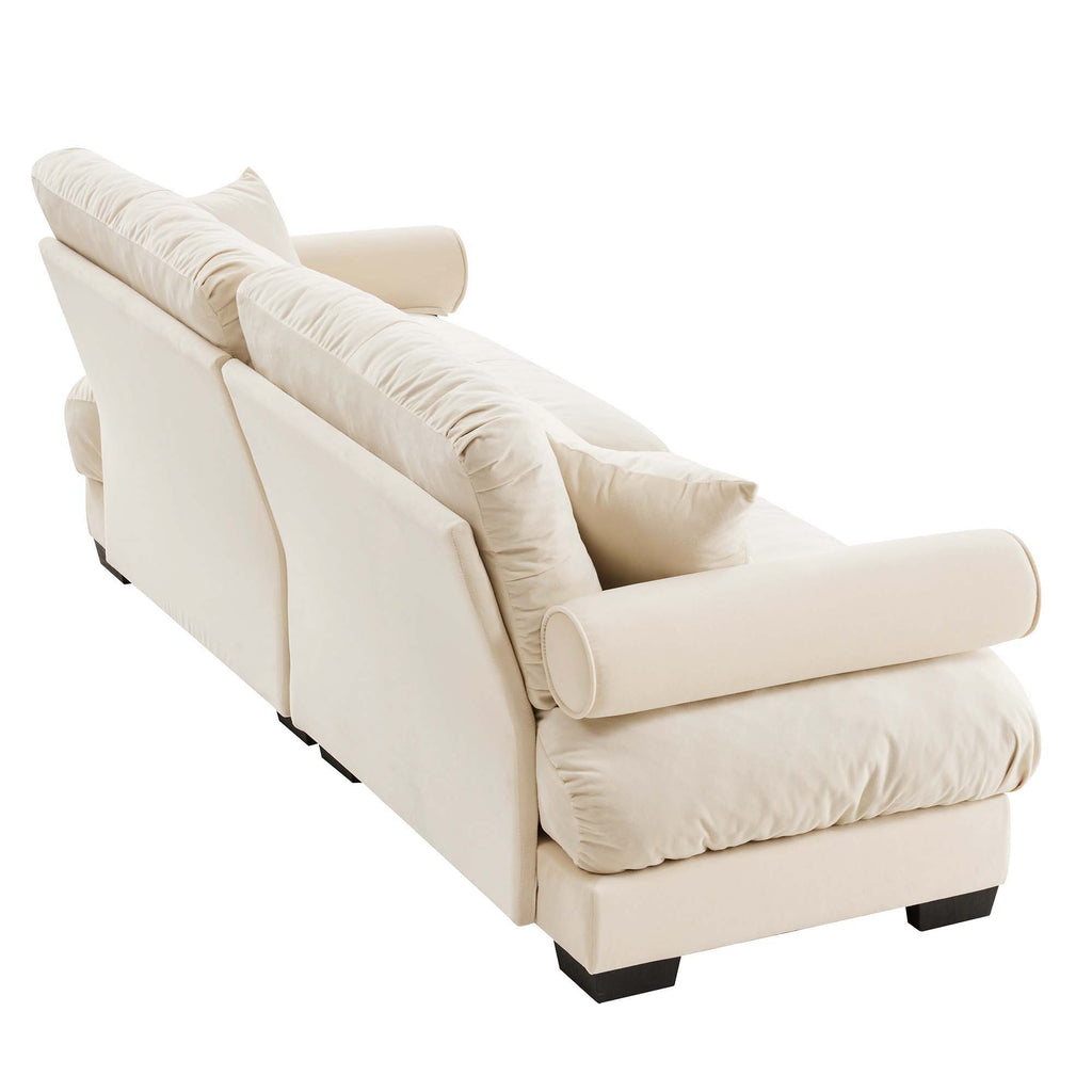 Extra Large 3 Seat Modern Velvet Sofa With Cloud Like Comfort Color Includes Waist And Throw Pillows - Cream