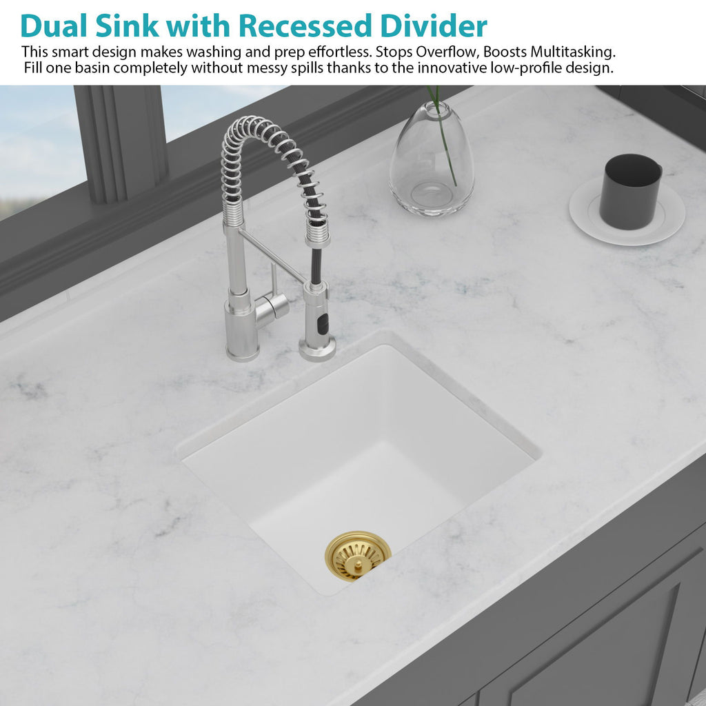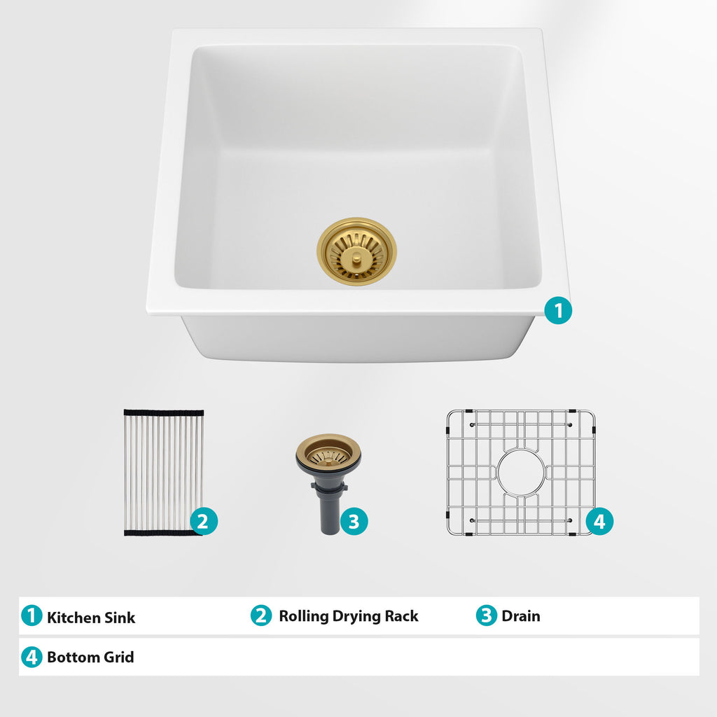 17.71" X 15.74" Elegant Quartz Kitchen Sink Undermount Granite Composite - White