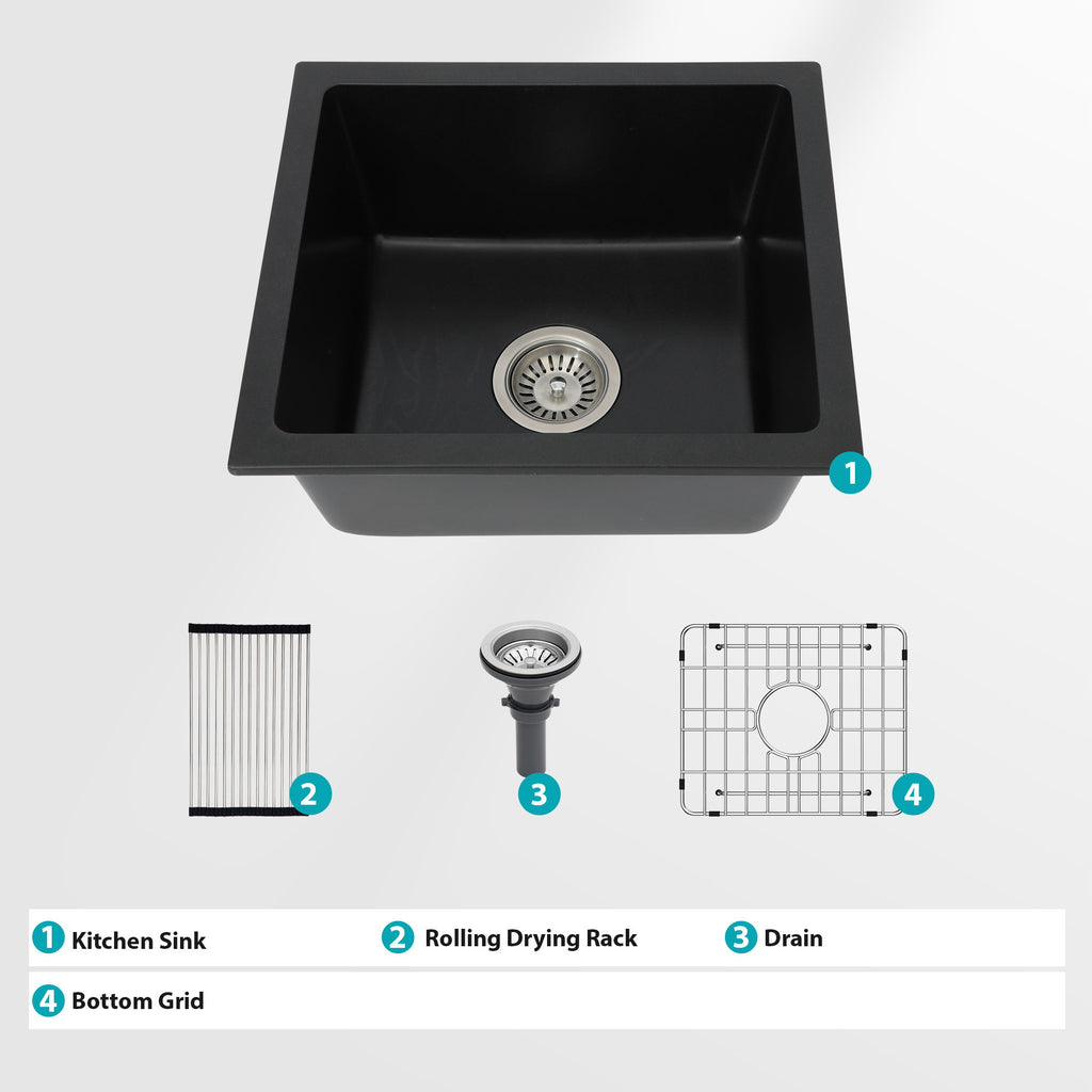 Kitchen Sink Undermount Granite Composite 17.71" X 15.74" - Black
