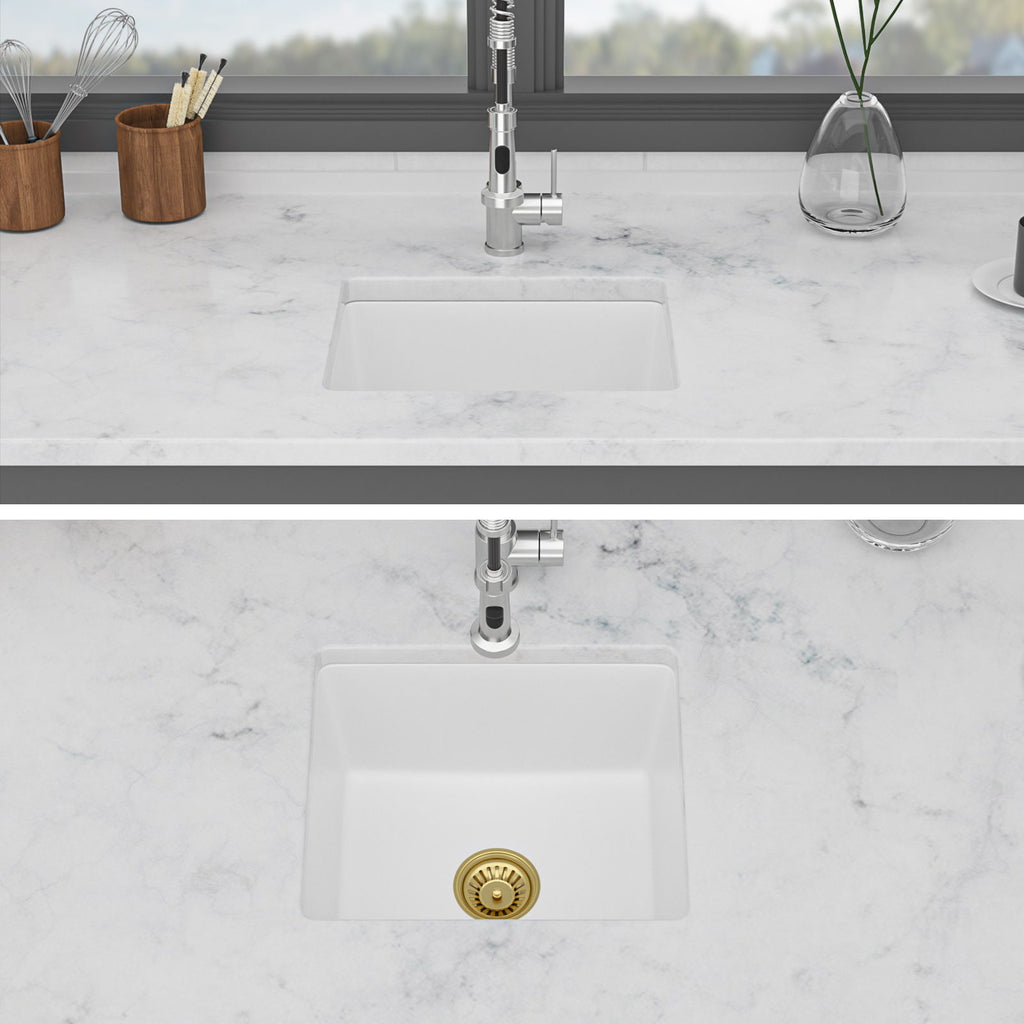 Undermount Single Bowl Kitchen Sink, With Durable Non Porous Surface - White