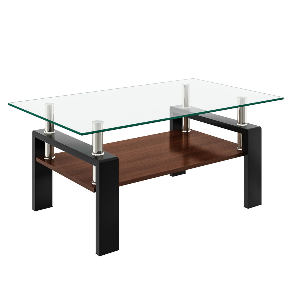 Modern Rectangular Coffee Table With Tempered Glass Top Layer, Table For Living Room - Transparent