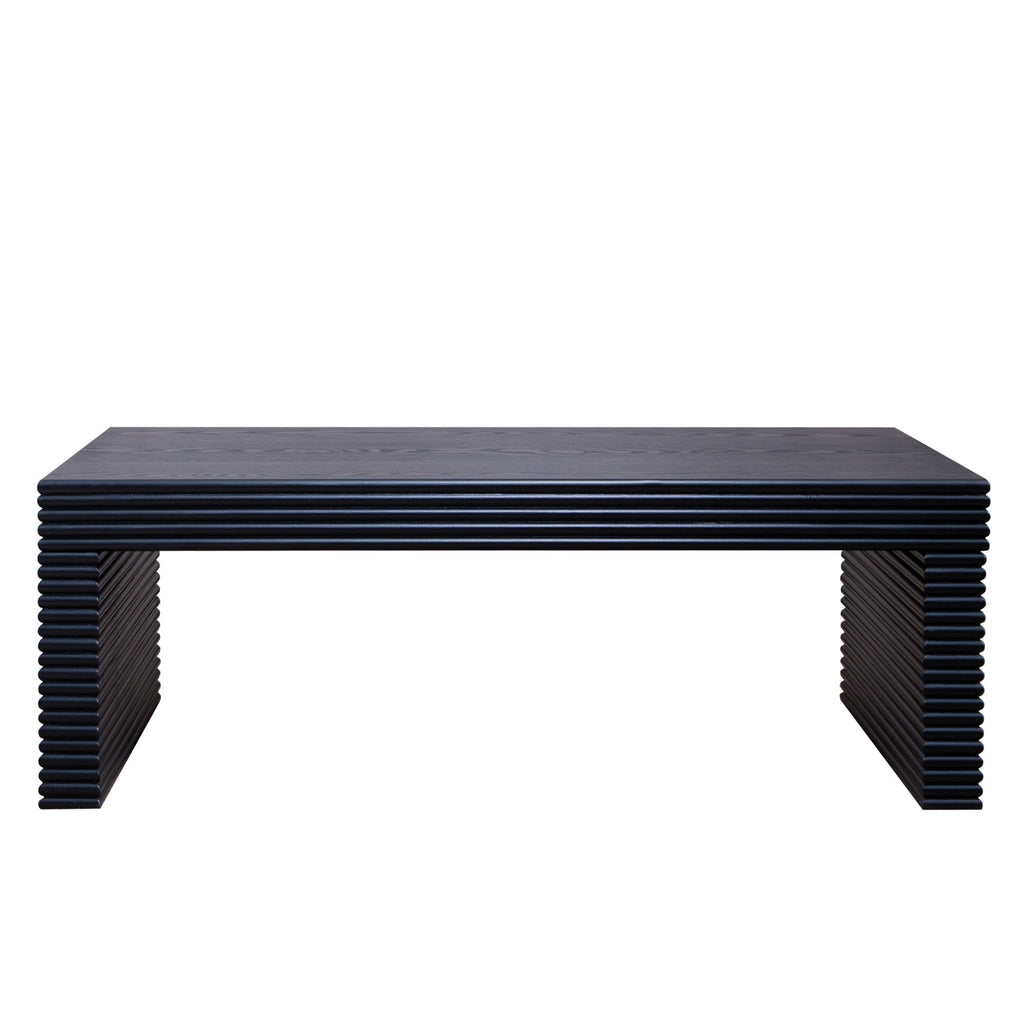 Modern Ribbed Coffee Table, Rectangular Low Profile Center Table For Living Room - Black