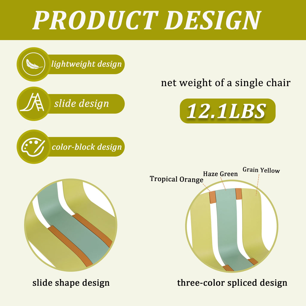 4 Piece Set Of Modern Striped Color Blocking Single Chairs Waterproof And Fade Resistant - Grain Yellow / Haze Green / Tropical Orange