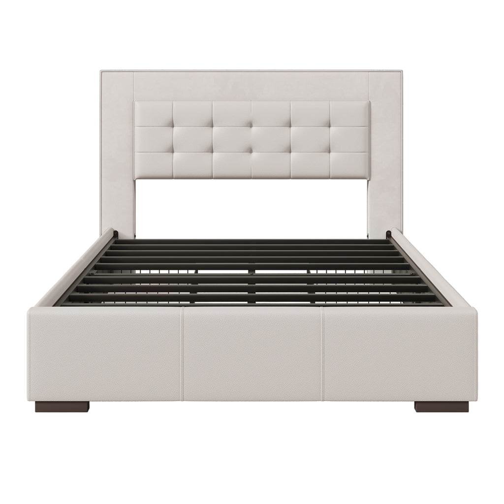 4 Large Storage Drawers: Bring space-saving storage into your restful retreat with this upholstered bed, featuring four under-bed drawers on caster wheels that provide a place for clothes, sheets, blankets, and beyond.