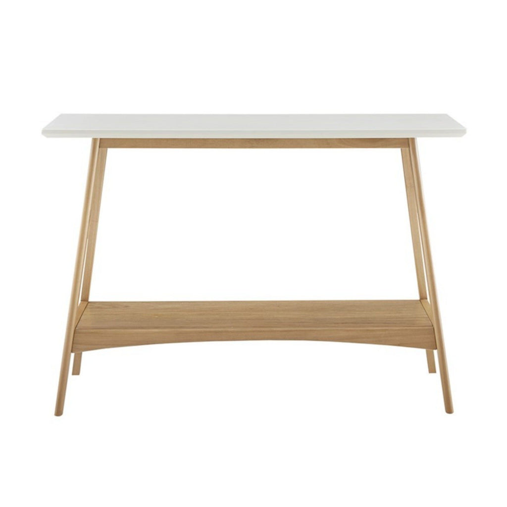 Console Table With Lower Shelf - Off White / Pecan Wood