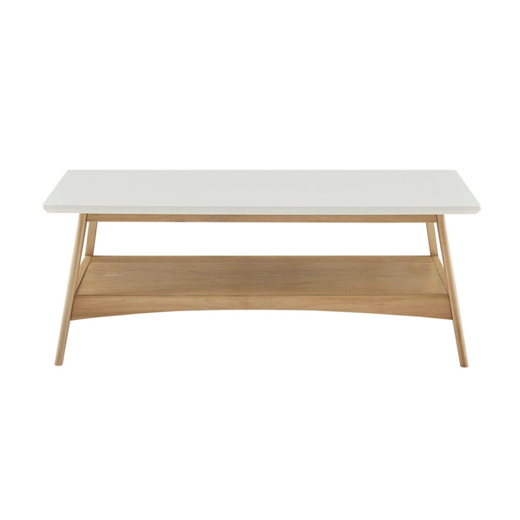 Mid - Century Modern Coffee Table Lower Shelf - Off White / Pecan