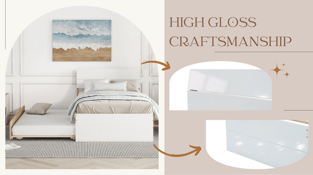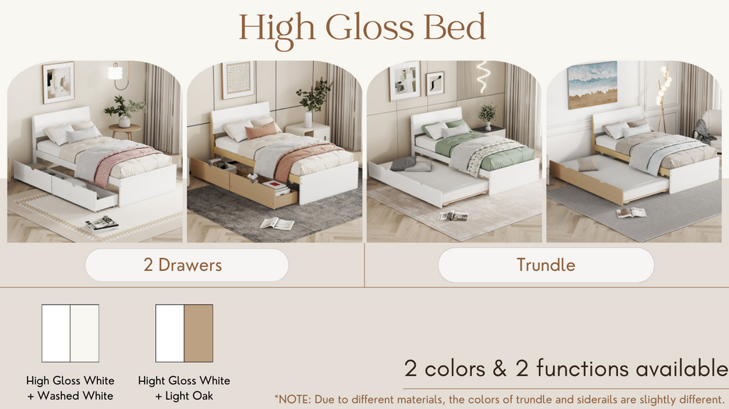 - [Modern & Elegant Design]: The luxuriously stylish twin-size white high gloss bed frame not only looks contemporary but reflects high-quality craftsmanship from top to bottom. This charming bed frame blends style & functionality lighting up your bedroom, and is perfect for any room style.