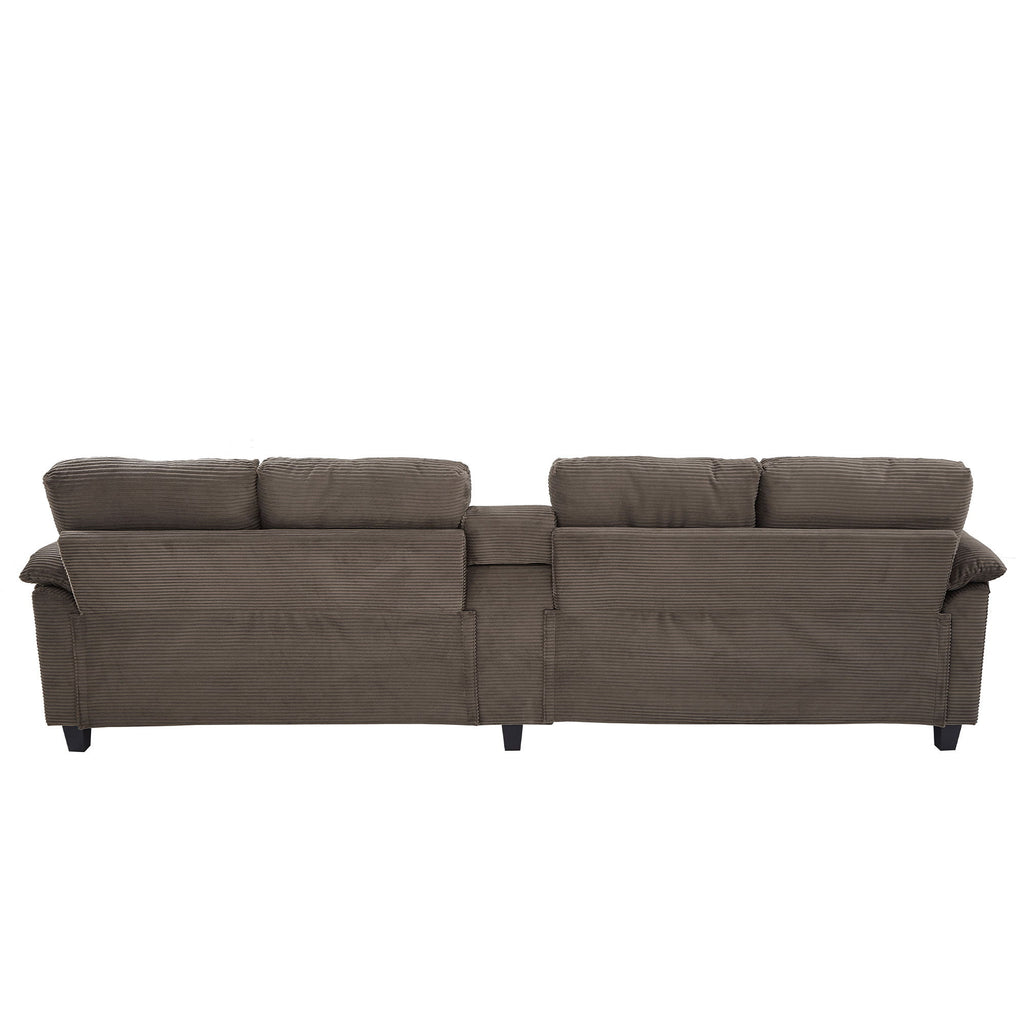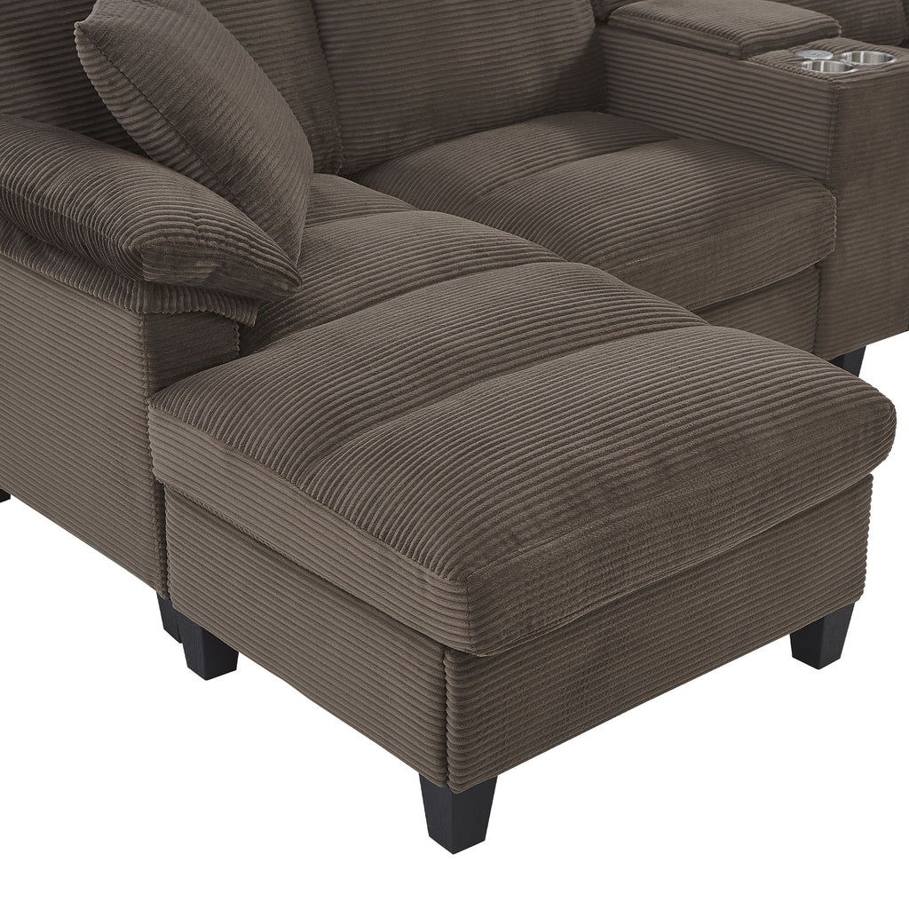 U-Shaped Sectional Sofa, Hidden Storage Ottomans, USB Ports, And Cup Holders - Brown