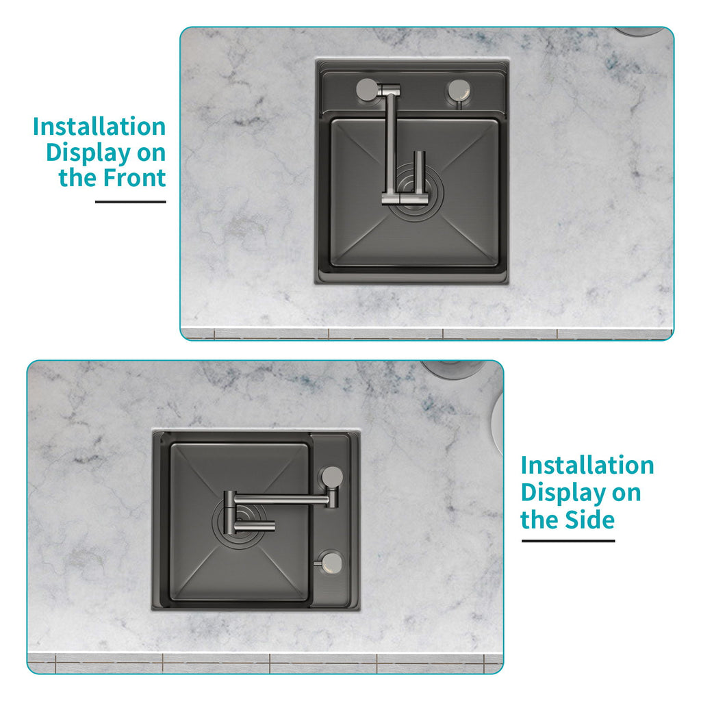 15" Undermount Bar Sink With Folding Faucet, 16 Gauge Stainless Steel, Single Bowl - Gunmetal Black