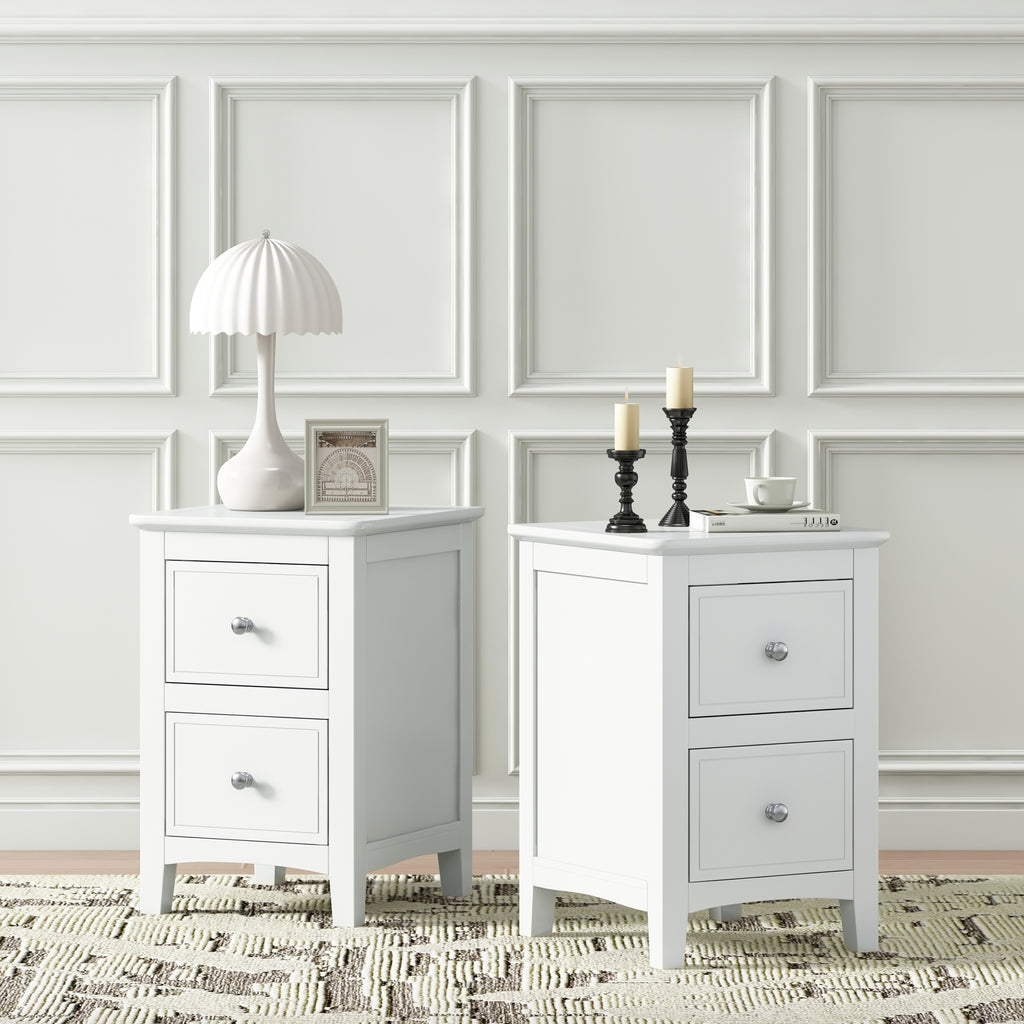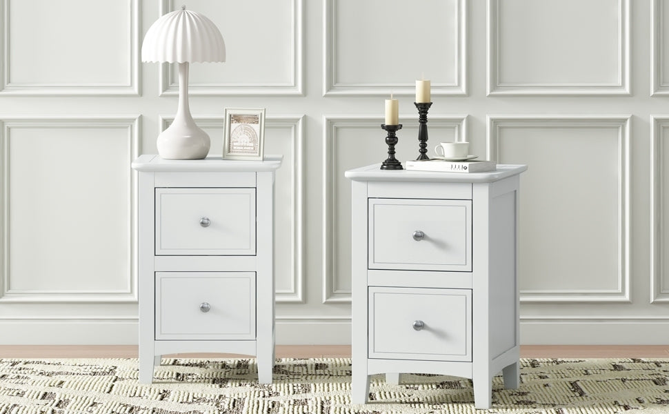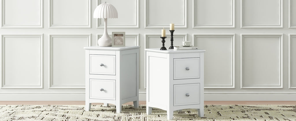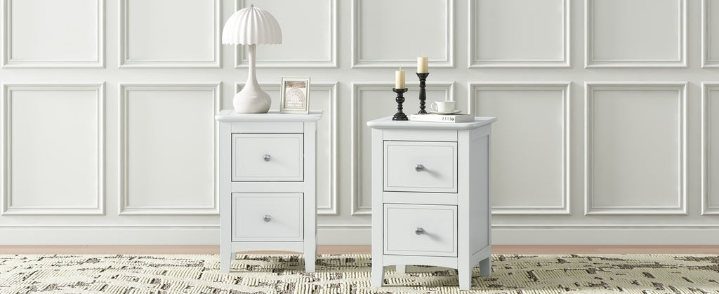 The Two Drawer Nightstand is crafted from high-quality pine wood and MDF with lasting quality, the bedside chest offers a contemporary aesthetic to your living space. This is the perfect solution for storing everything you require for a good night's sleep. Featuring with concise stylish appearance and elegant style, ideal as a nightstand,chest, dresser,storage cabinet or bedside table in the bedroom,kid's room, hallway, living room, and complements any room décor or any style of furniture.