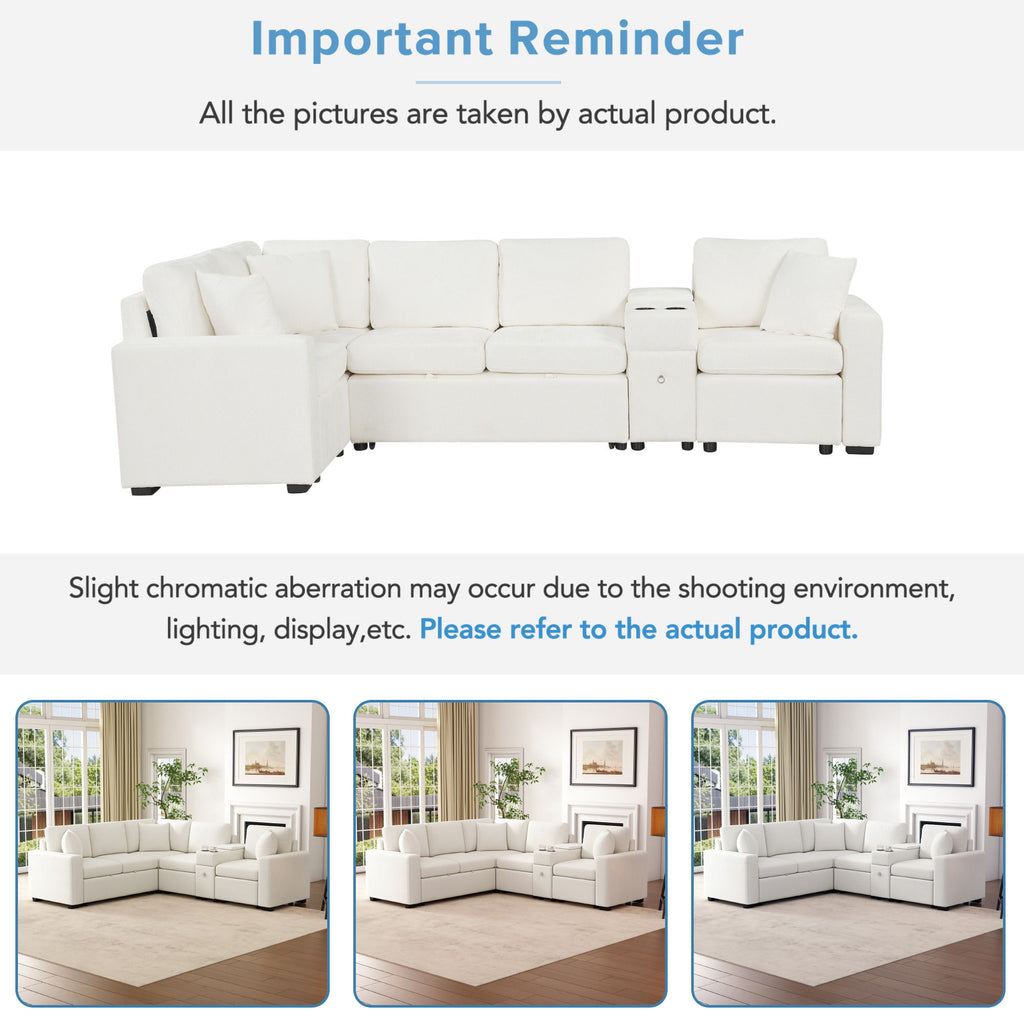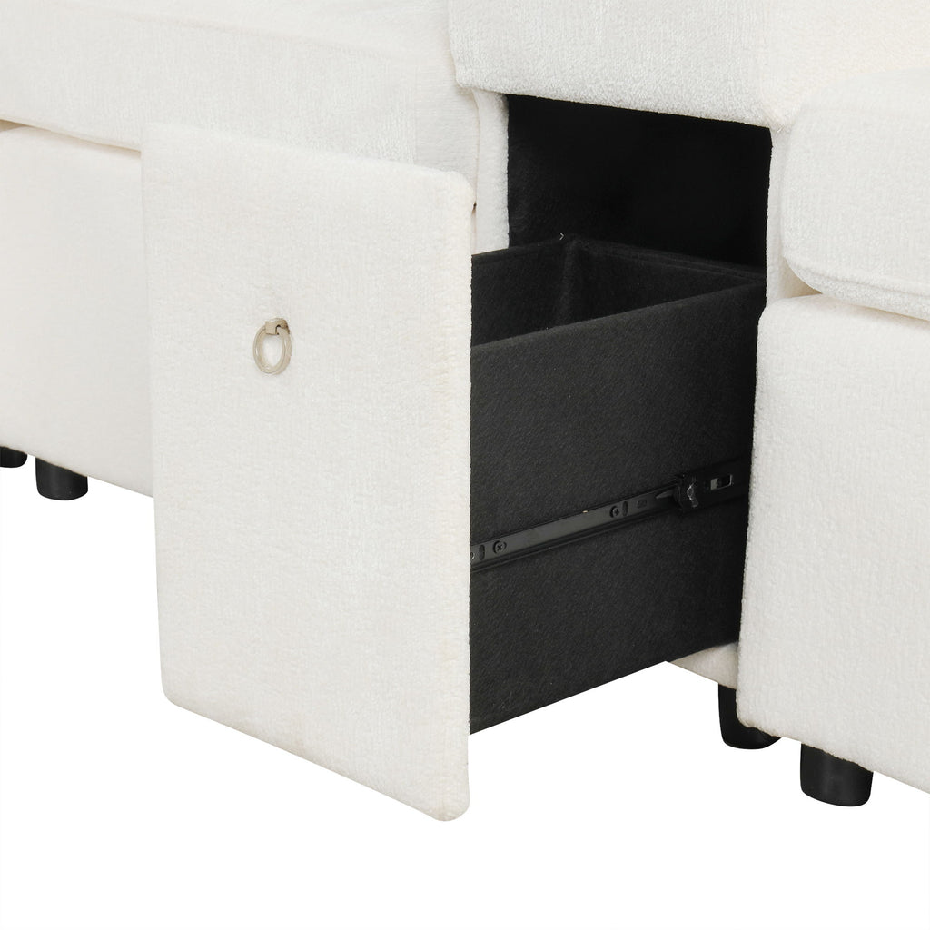 Modular L-Shaped Sectional Sofa Bed With Pull-Out Sleeper, Cup Holders, And Storage - White