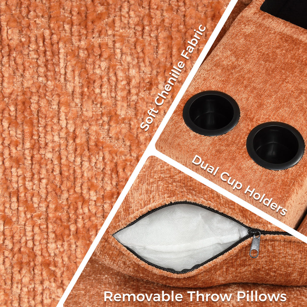 Modular L-Shaped Sectional Sofa Bed With Pull-Out Sleeper, Cup Holders, And Storage - Orange