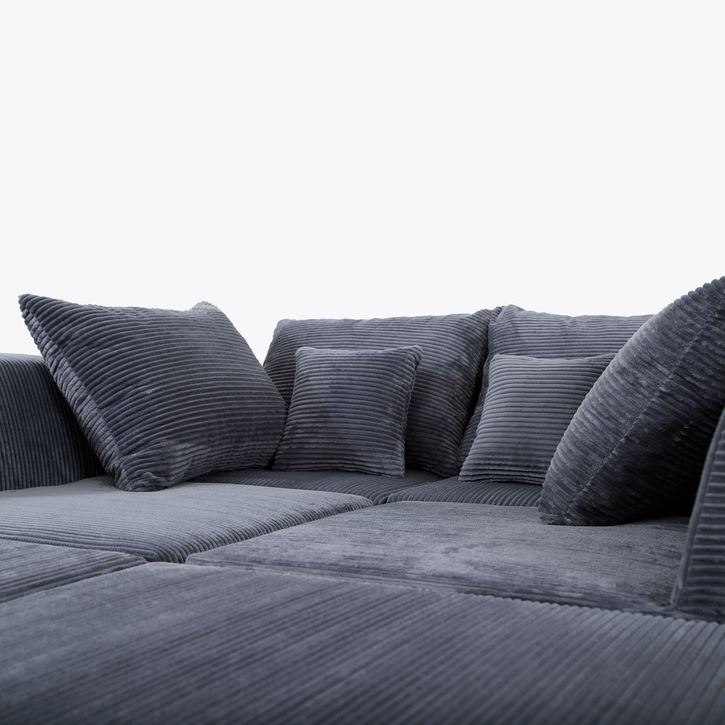 Modern 6 Piece Modular U Shaped Sectional Sofa With Chaise Lounge And Soft Corduroy Upholstery - Gray
