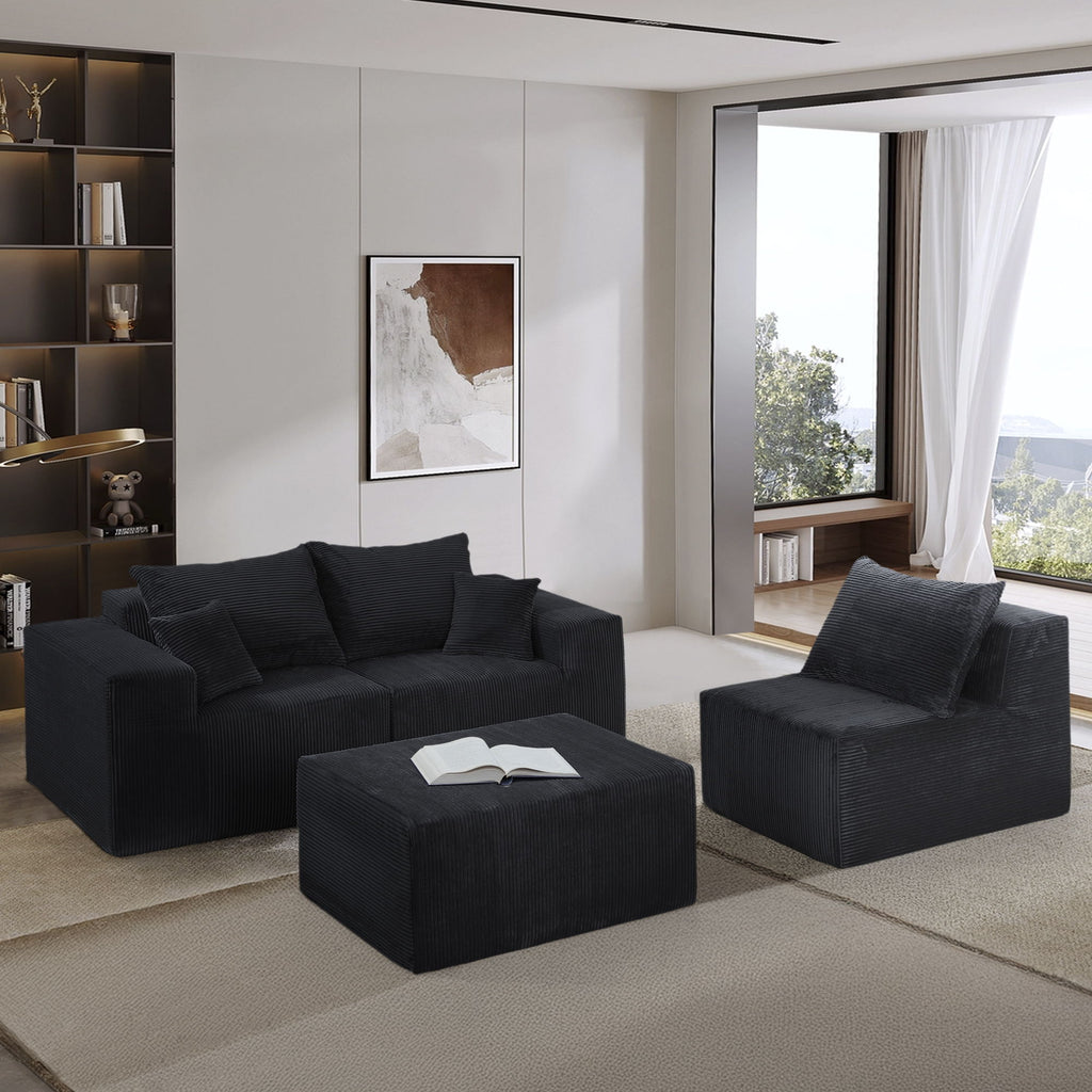 Modern 6 Piece Modular U Shaped Sectional Sofa With Chaise Lounge Corduroy - Black
