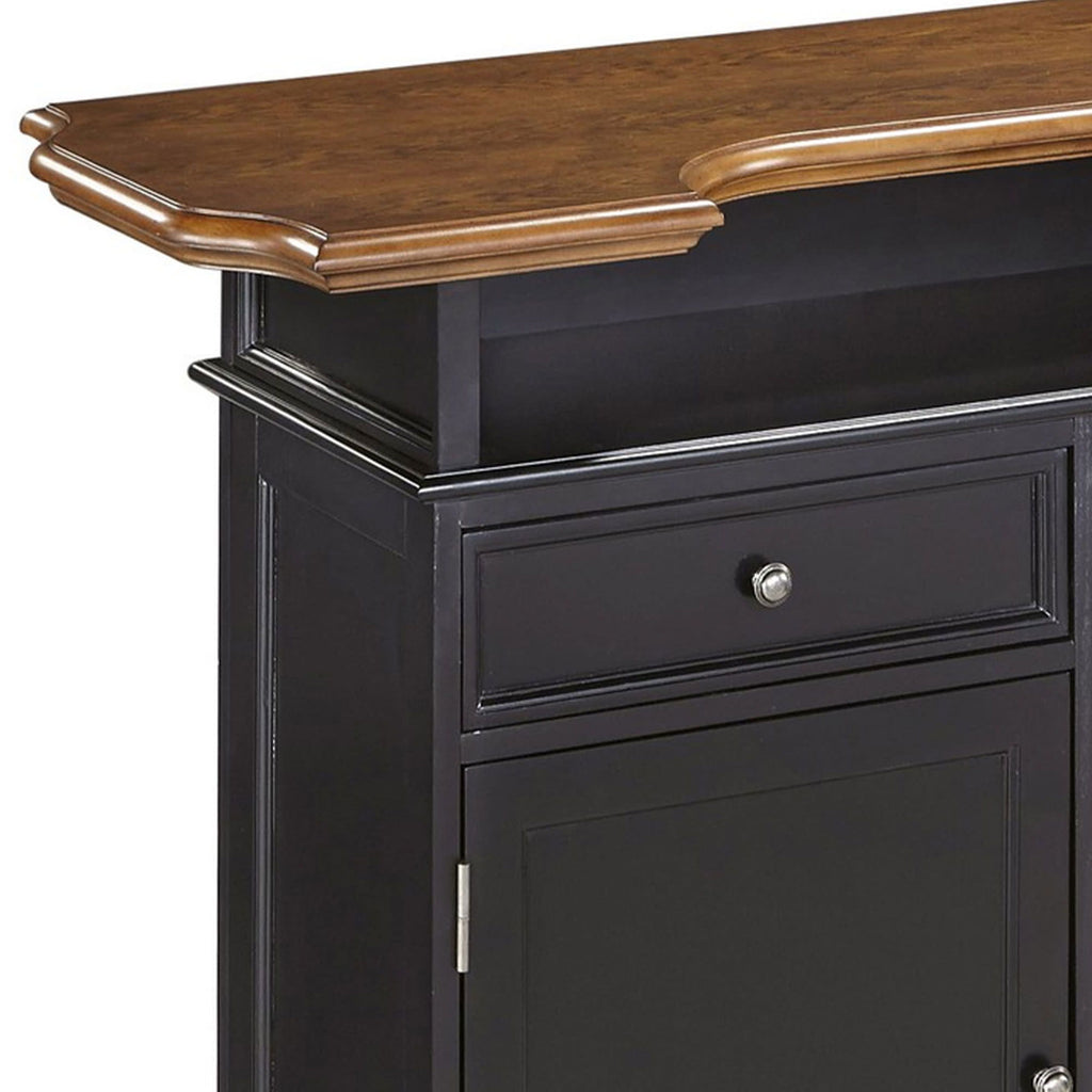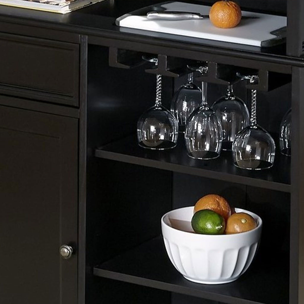 - One storage drawer, two fixed shelves and two adjustable shelves accommodate bottles, glassware, and bar supplies.
