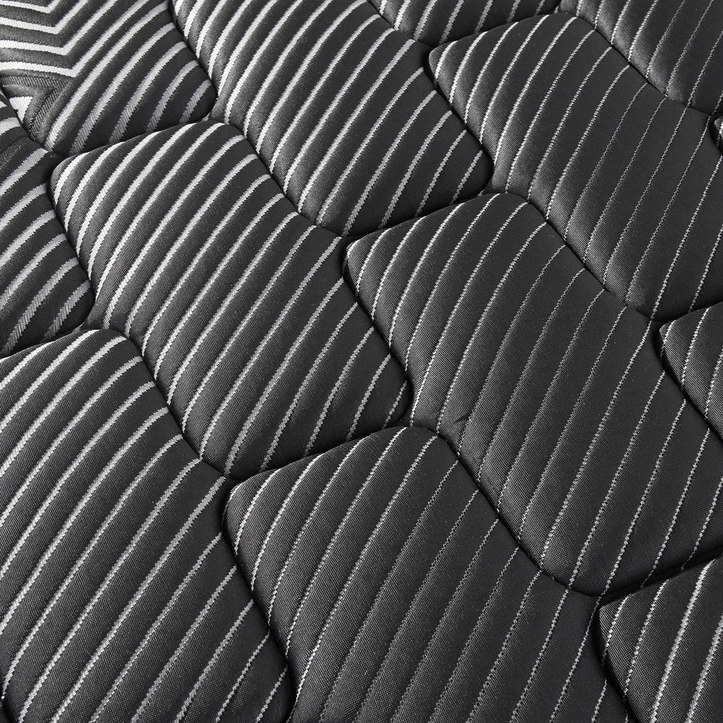 Surrender to the embrace of this premium mattress, a sanctuary of rest where cutting-edge technology meets time-honored craftsmanship, proudly made in the USA. Draped in an icy black cover, this mattress invites a cooler slumber, its breathable fabric expertly designed to wick away moisture. Beneath, the visco foam, enriched with copper, gel, silver, and graphite, contours to your form, offering an unrivaled pressure relief that whispers of dream-filled nights. This foam is Certi-Pur-US certified, ensuring it meets rigorous standards for emissions, content, performance, and durability. The robust high-density firm comfort foam supports not just the spine, but every dawn's ambitions, while the perimeter edge wrapped coils promise a tranquil sea for sleep, undisturbed by the movements of your companion.