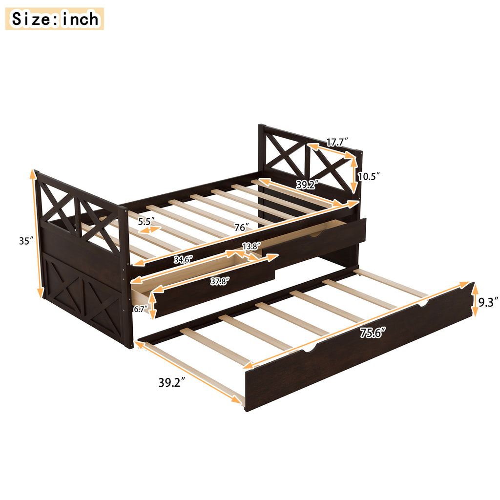 Multi-Functional Daybed with Drawers and Trundle, Espresso