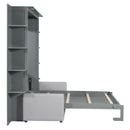 Queen Size Murphy Bed Space Saving Wall Bed With Sofa - Gray