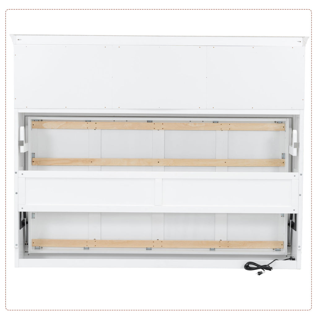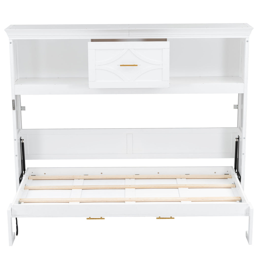 Twin Size Murphy Bed With Charging Station And Drawer - White
