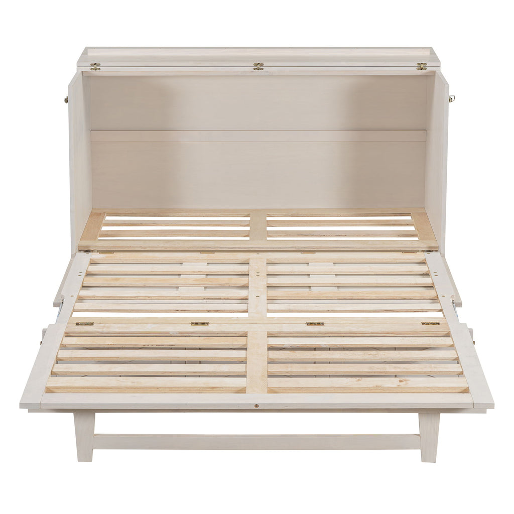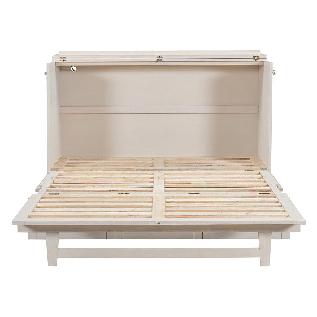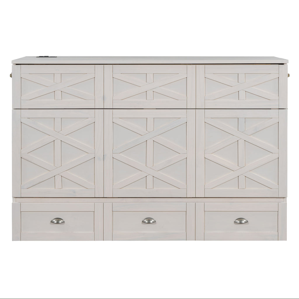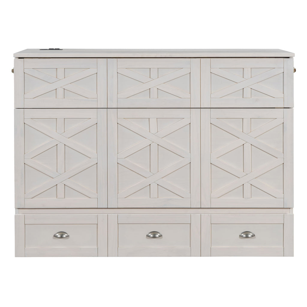 Queen Size Murphy Bed With Large Drawers - Brushed White