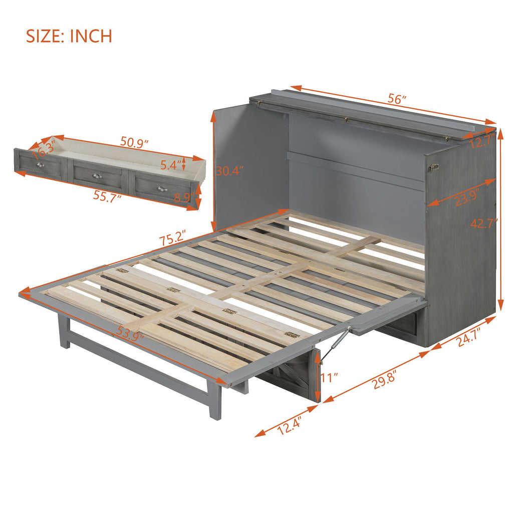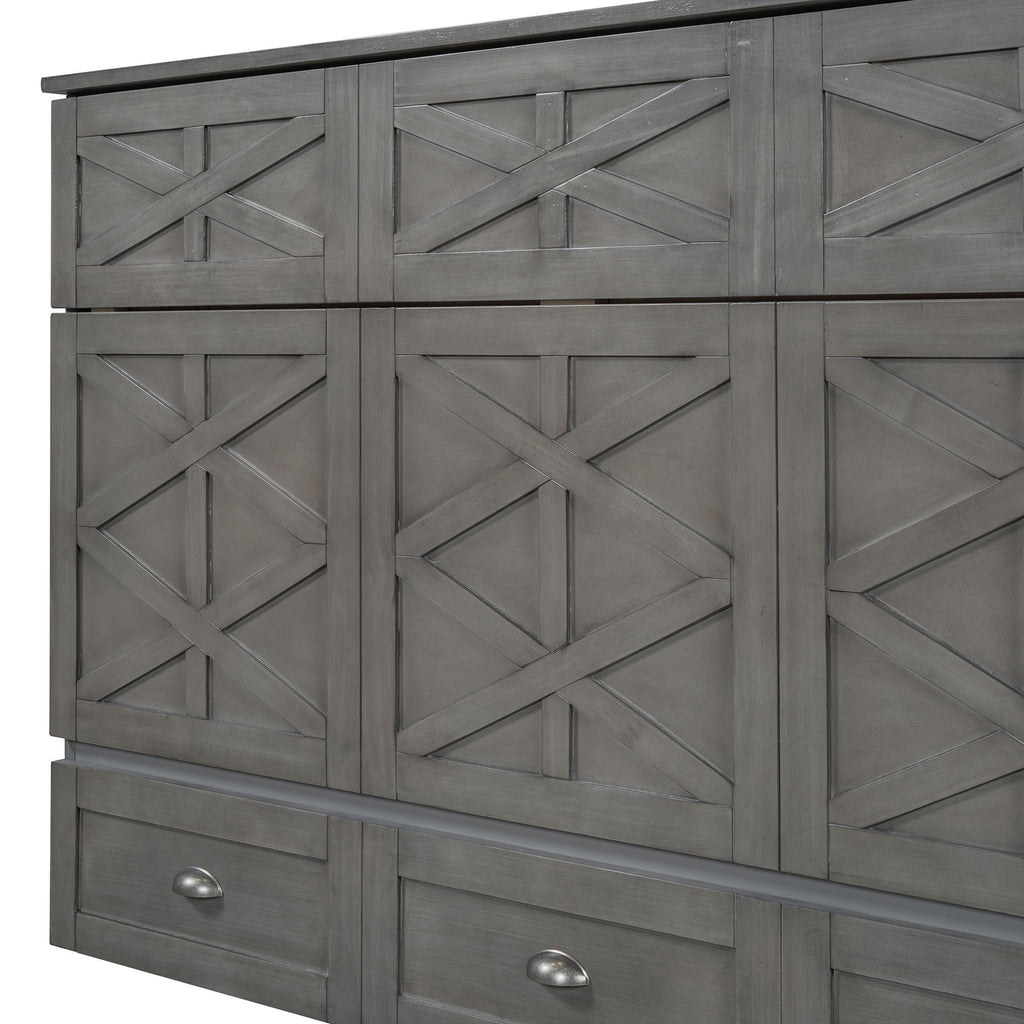 Queen Size Murphy Bed With Large Drawers - Brushed Gray