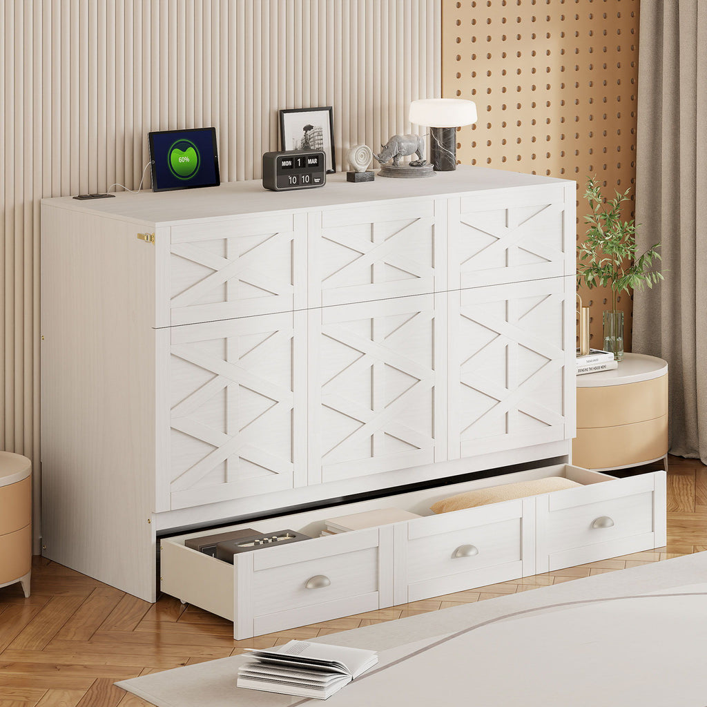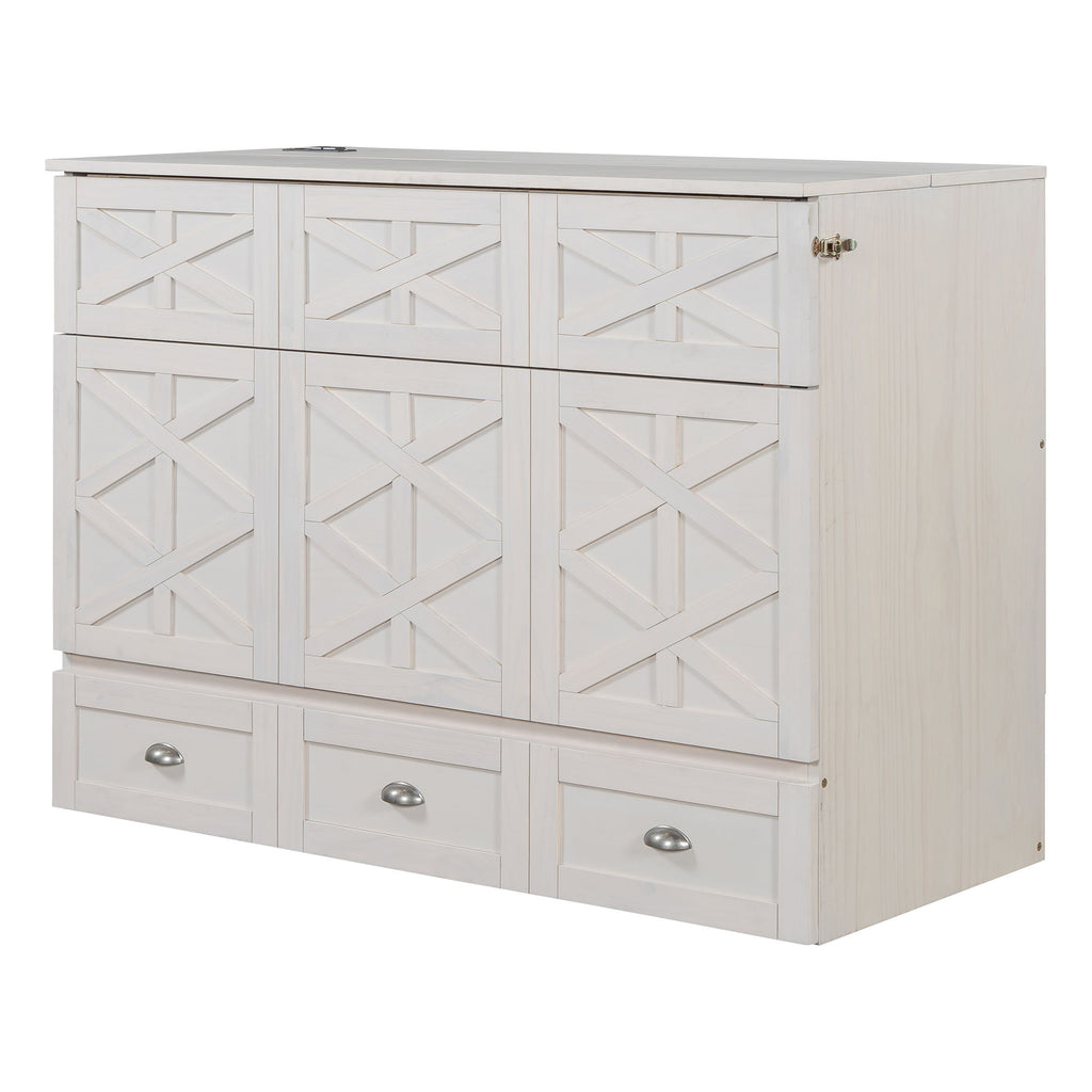 Full Size Murphy Bed With Large Drawers - Brushed White