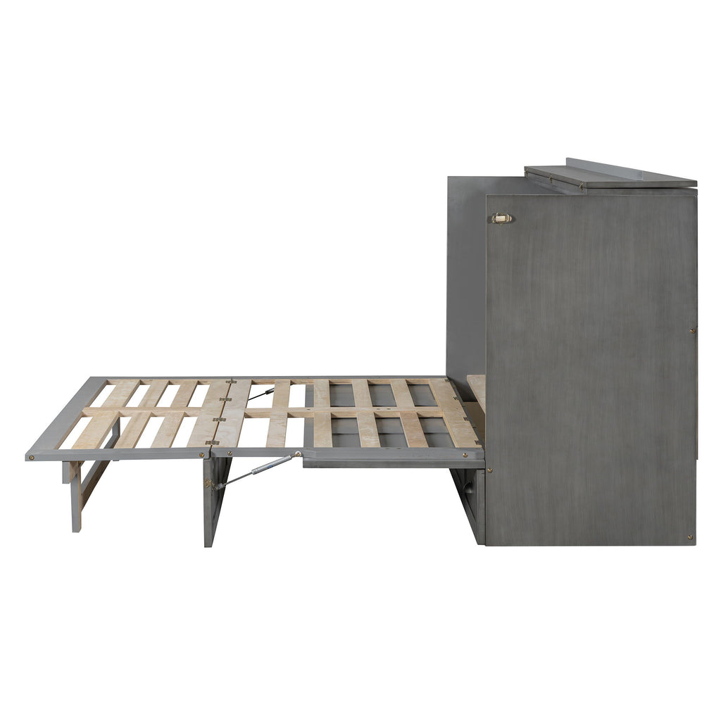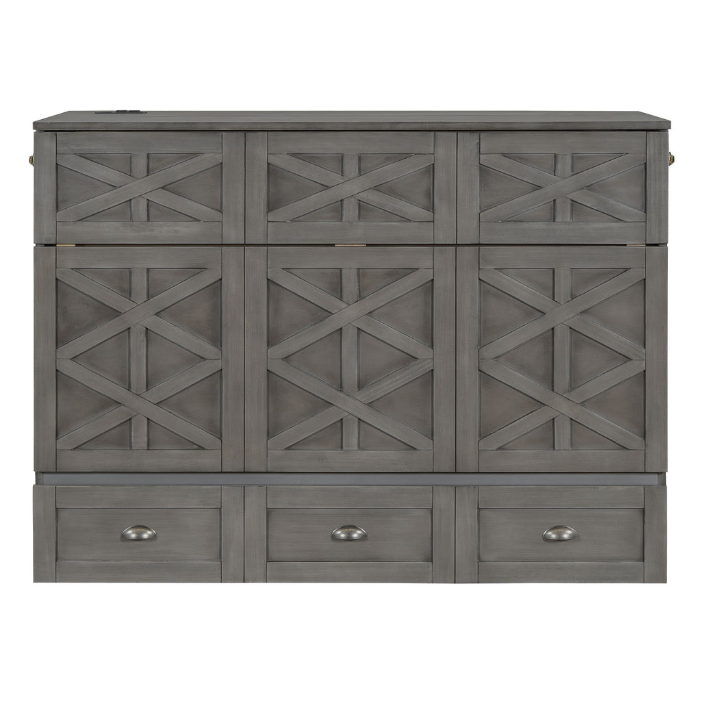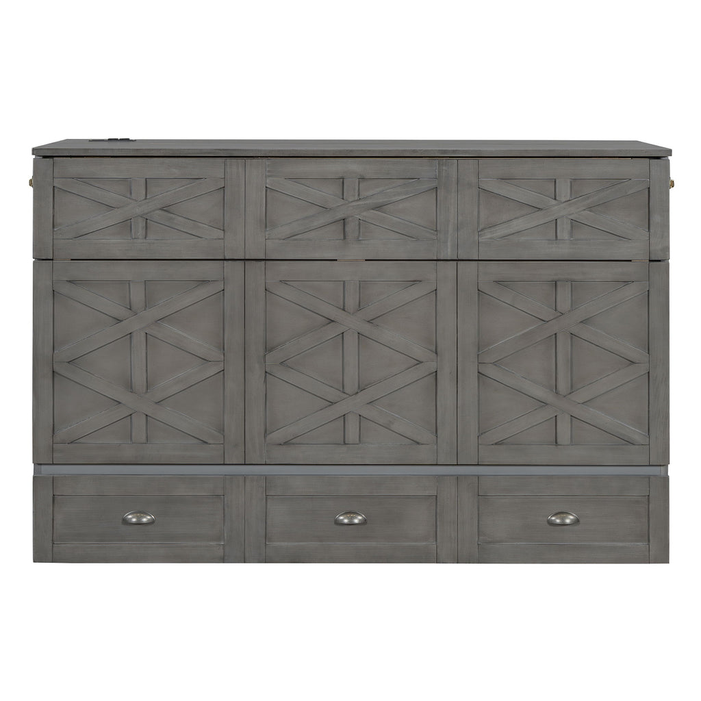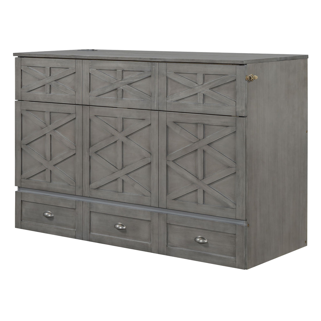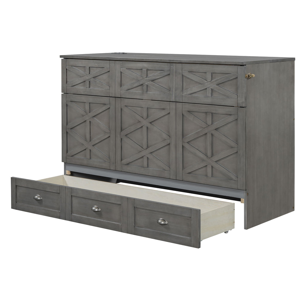 Full Size Murphy Bed With Large Drawers And USB Ports - Brushed Gray