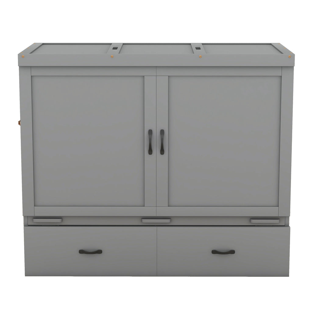 Full Size Murphy Bed With USB Port And A Large Drawer - Gray