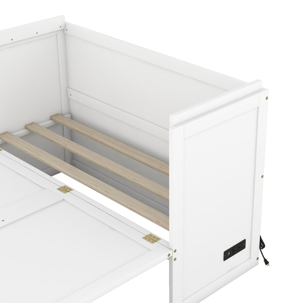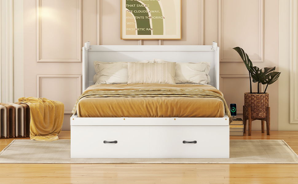 Full Size Murphy Bed With USB Port And A Large Drawer - White